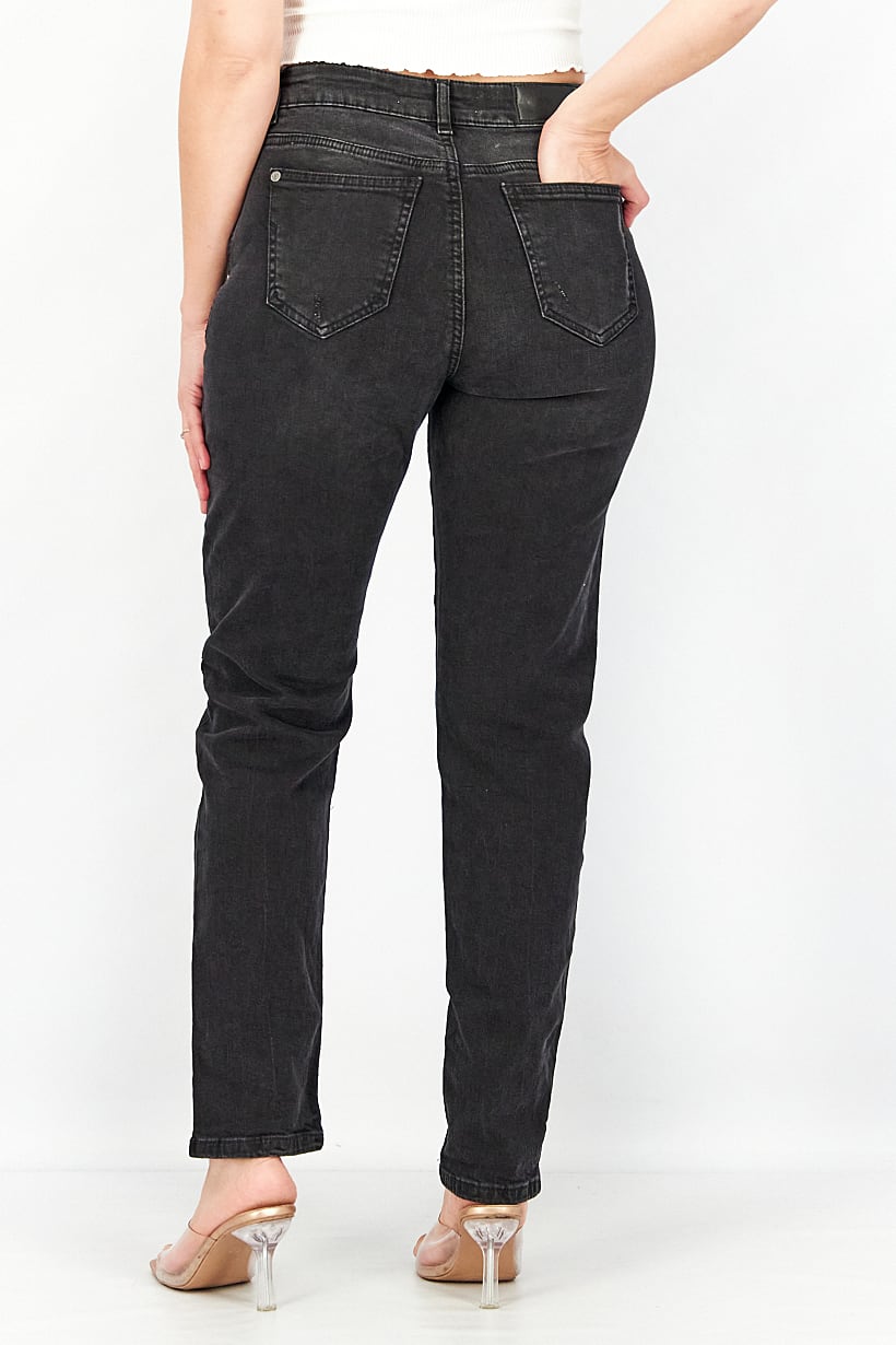 Black Women’s Slim-Fit Jeans with Five Pockets.