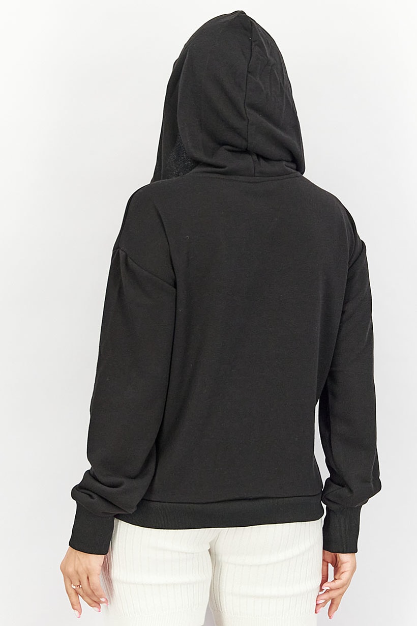 Women Clothing, Sportswear, women sport fit brand logo hooded sweatshirt black