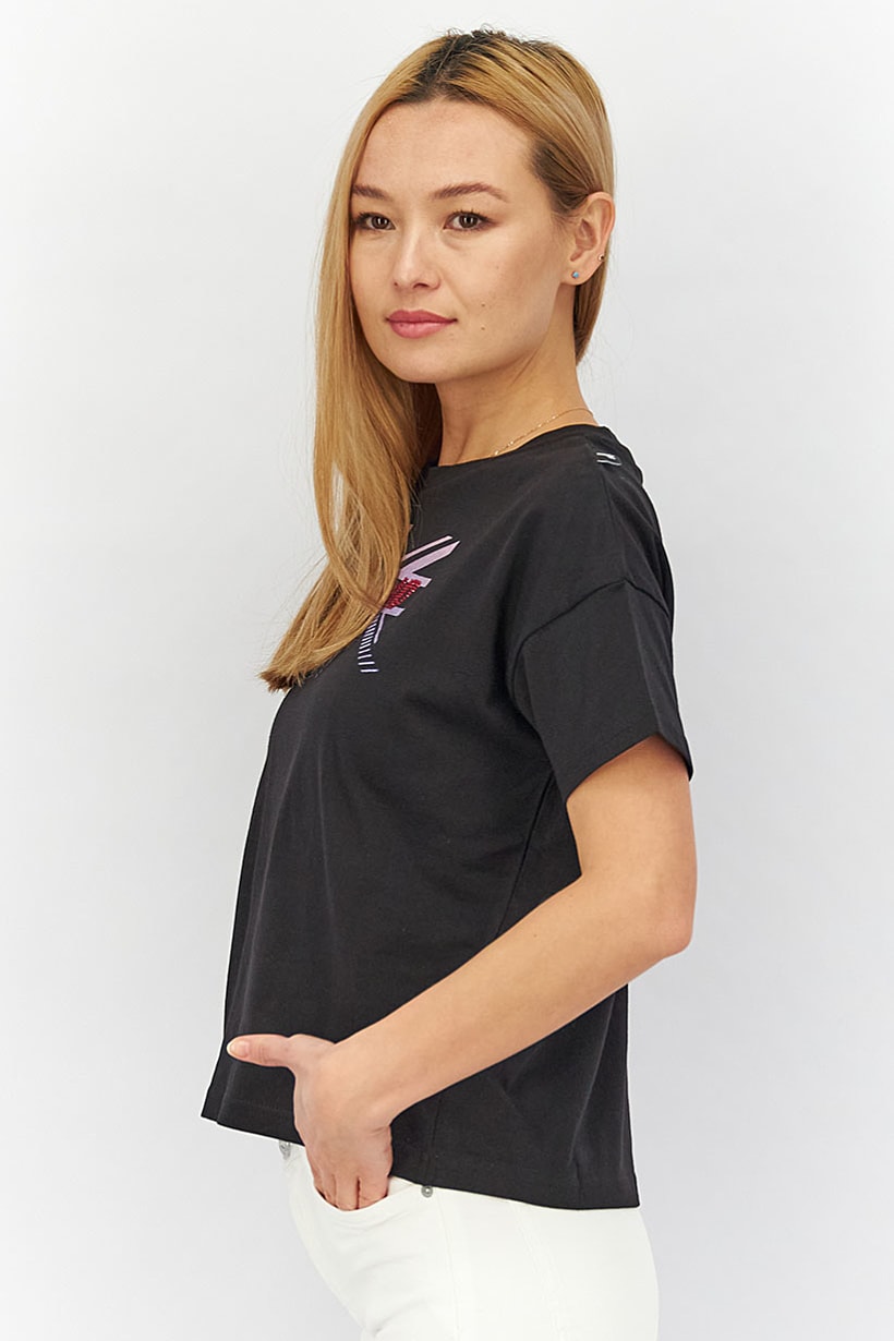 | nameOriginal | Women Sport Fit Crew Neck Brand Logo Top, Black |