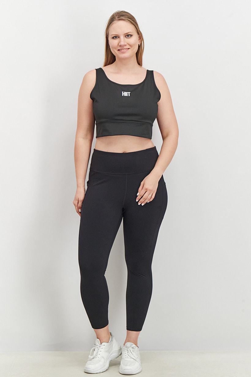 Black Women’s Sports Bra with Brand Logo, Non-Padded.