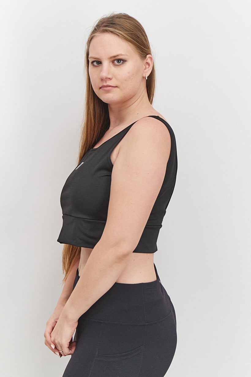 Bottom Hem : Straight, Care : Machine washable, Fit : Sportswear Fit, Size shown : International, Sleeve Length : Sleeveless, Thickness : Light, Type of Sport : Training, Types of Neckline & Collar : Round neckline, Disclaimer : Product color may slightly vary due to photographic lighting sources or your monitor settings., Fabrics : 100% Polyester, Occasion : Sport, Pattern & Print : Brand Logo, Sportswear Type : Sports Bra, Types of Closures : Pullover, Color Family : Black,