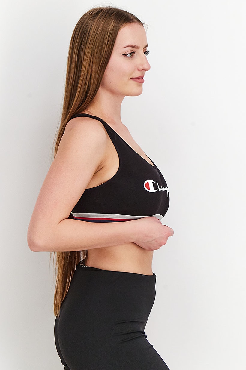 | nameOriginal | Women Non Padded Brand Logo Sports Bralette, Black |