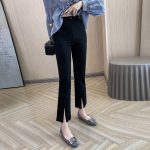 nameOriginal | Black Women's Spring and Summer Thin Cropped High Waist Small Loose Wide Leg Casual Split Trousers |