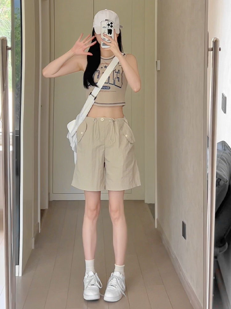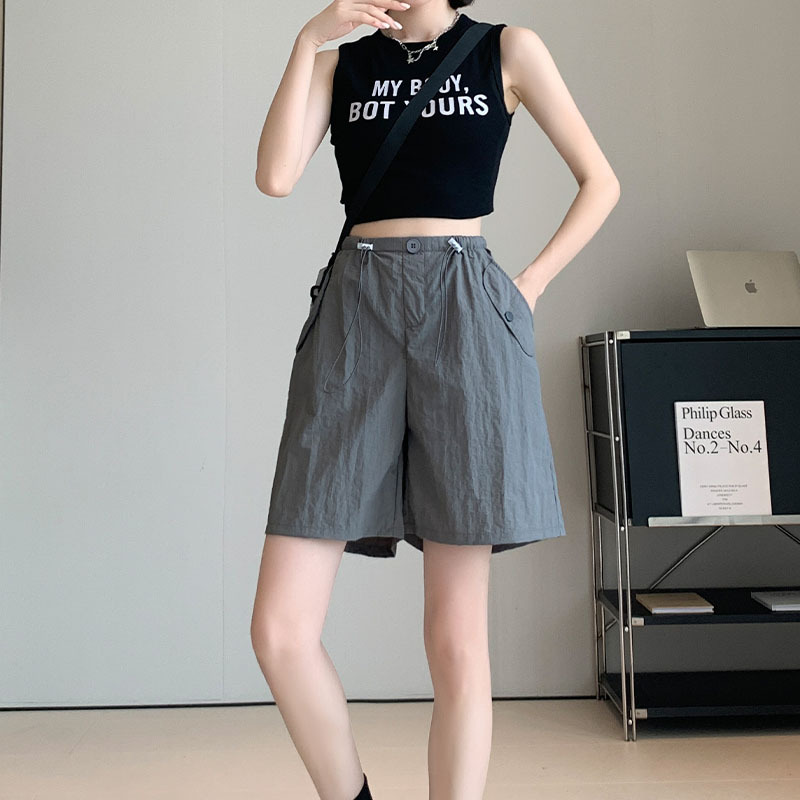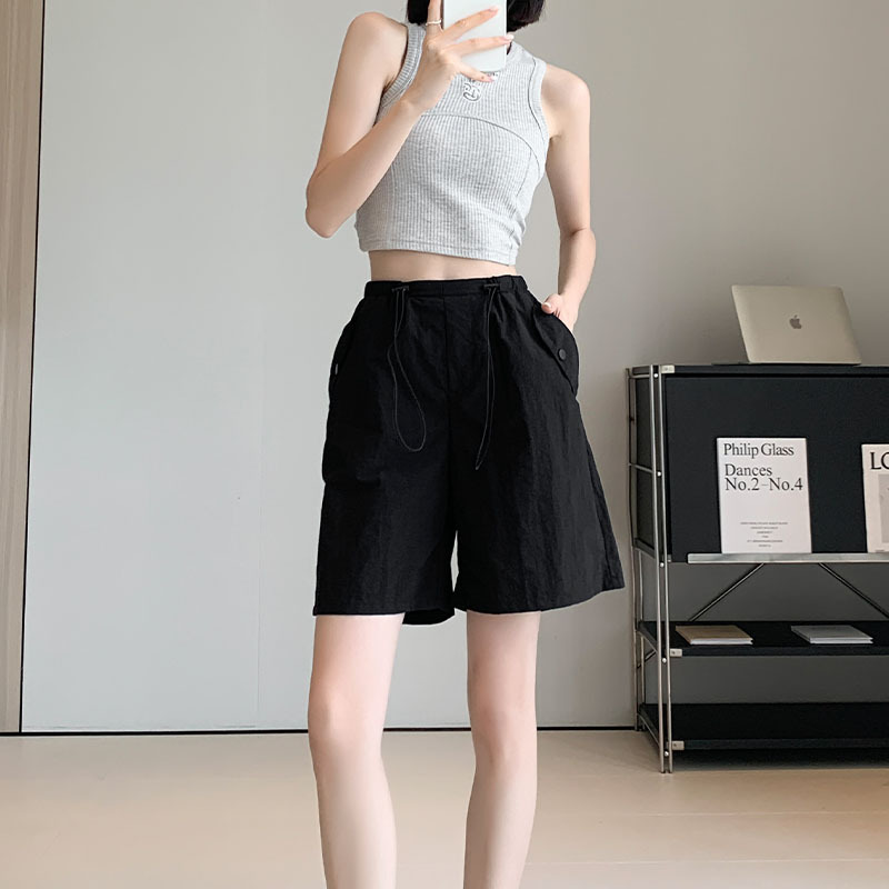 | nameOriginal | Black Work Shorts Women's Summer Thin High Waist Casual Wide Leg Mid-length Pants Small Quick-drying American Sports Pants |