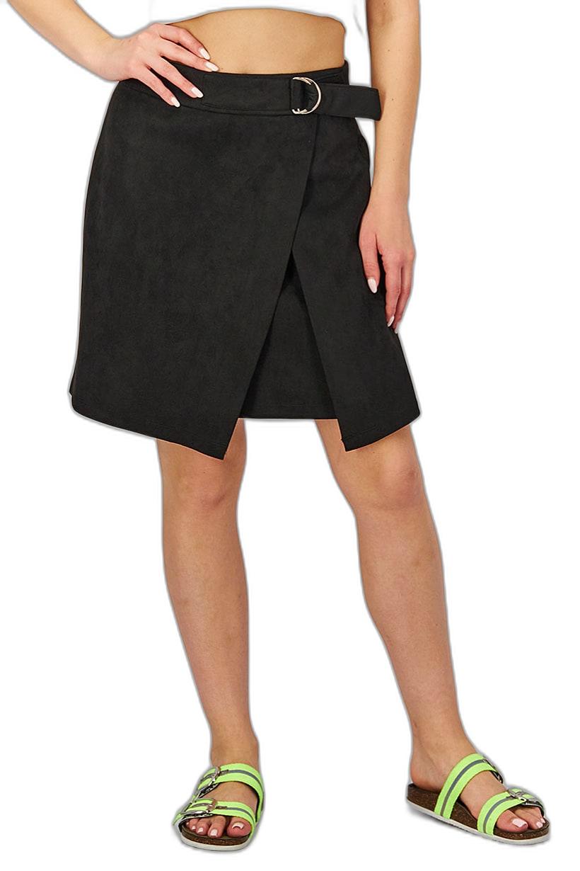 This is a regular fit wrap skirt with a slit hem and a zipper fly bottom closure. It is made of 92% polyester and 8% elastane fabrics, and is machine washable. The bottom style/pattern is pull-on, and the color family is black. Please note that the product color may slightly vary due to photographic lighting sources or your monitor settings. This skirt is perfect for casual occasions and comes in international sizes.