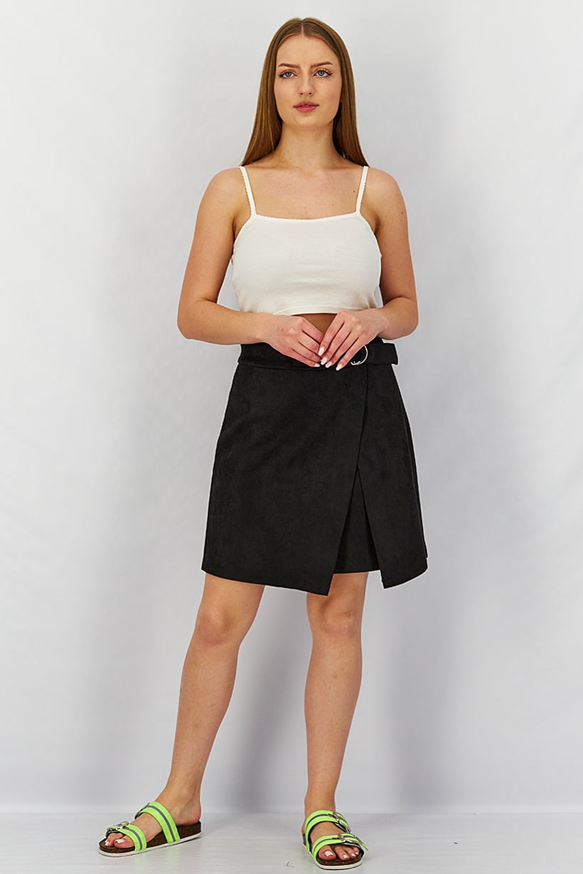 | nameOriginal | Women Solid Wrap Mini Skirt, Black |