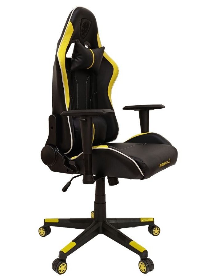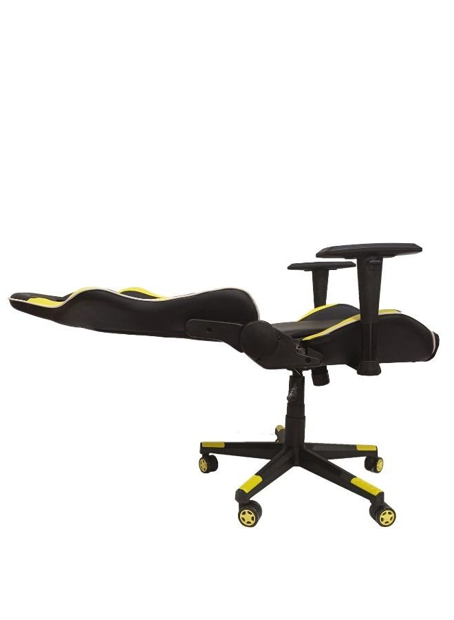 Black/Yellow Gaming & Office Chair with Steel-Frame, Breathable PVC Leather, 180° Recliner System, 120Kg Weight Capacity, and 2D Adjustable Arm-Rest.