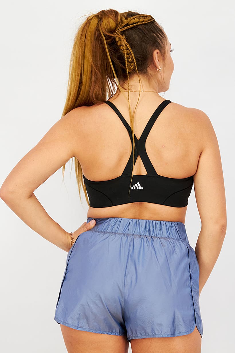 Care : Machine washable, Fit : Sportswear Fit, Padding : Yes, Size shown : Asian, Thickness : Light, Type of Sport : Yoga, Disclaimer : Product color may slightly vary due to photographic lighting sources or your monitor settings., Fabrics : 88% Recycled Polyester, 12% Elastane, Pattern & Print : Brand Logo, Sportswear Type : Sports Bra, Types of Closures : Pullover, Color Family : Black,