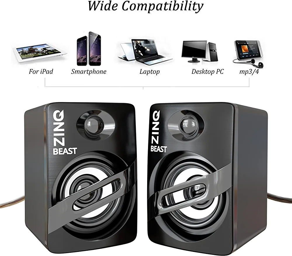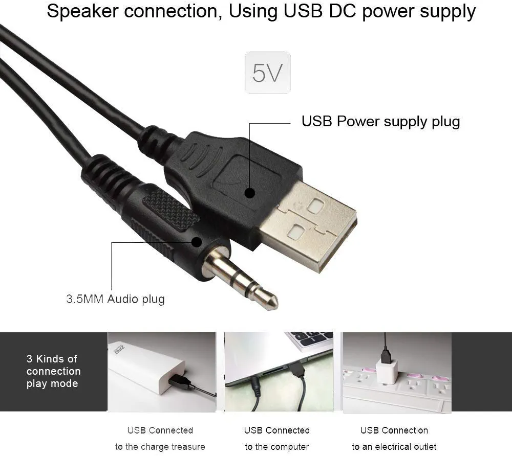 With a 3.5mm jack, these speakers are compatible with a range of devices, including laptops, computers, MP3 players, MP4 players, and cell phones, via an AUX cable.