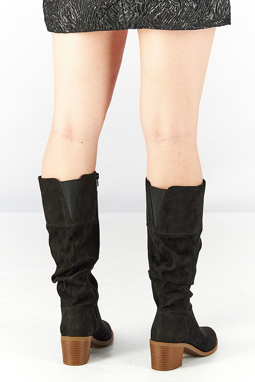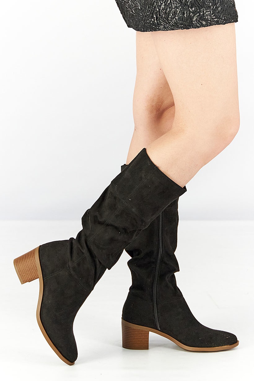 | descriptionOriginal | Heel Height : 3.15" / 8 cm, Heel Style : Block heel, Ideal For : Women, Shoe Closure : Zipper closure, Shoe Width : Medium, Sole Material : Synthetic sole, Style : Mid Calf Boot, Toe Style : Closed toe, Disclaimer : Product color may slightly vary due to photographic lighting sources or your monitor settings., Occasion : Casual, Shoe Material : Suede , Color Family : Black, |