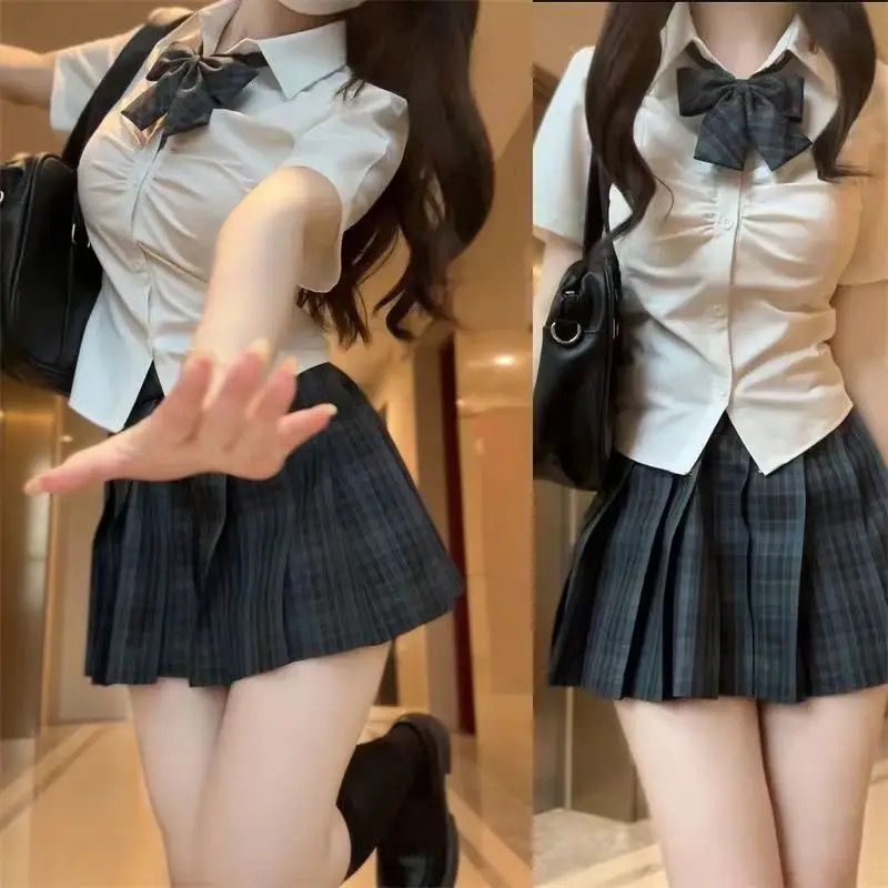 | nameOriginal | blackboard newspaper jk uniform london evening news japanese series a set of pleated skirt female students short sleeve shirt college style |