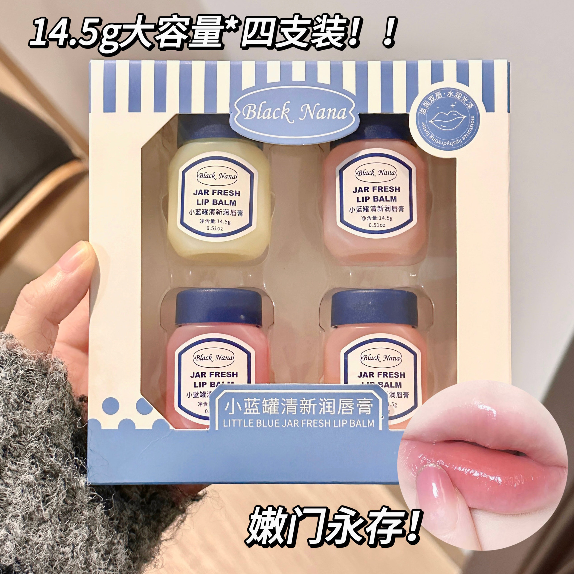 | nameOriginal | BLACKNANA small blue can fresh lip balm moisturizing fade lip lines Anti-cracking moisturizing lipstick base |