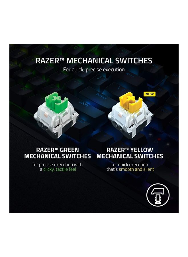 BlackWidow V3 Gaming Keyboard – Yellow Mechanical Switches, Linear & Silent, Programmable Macro Functionality, USB Passthrough – Black
