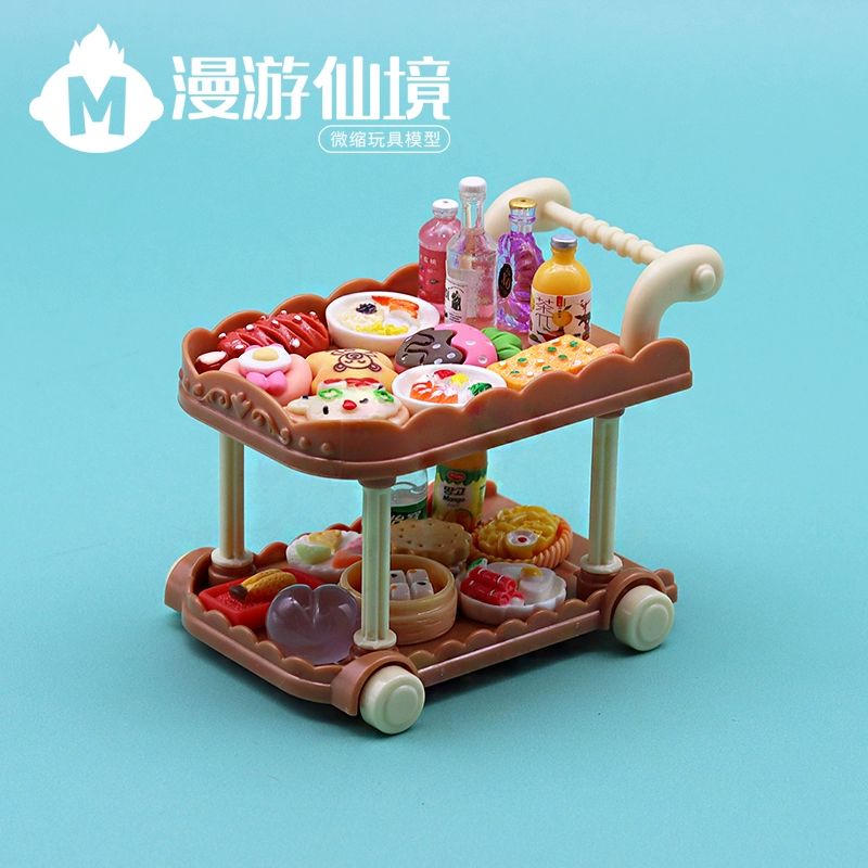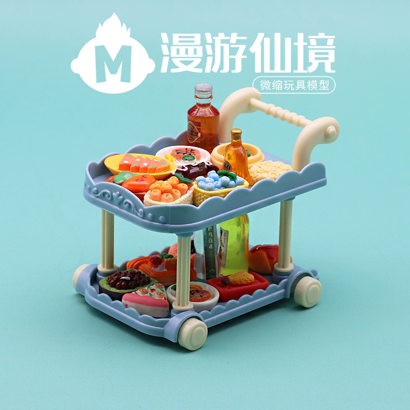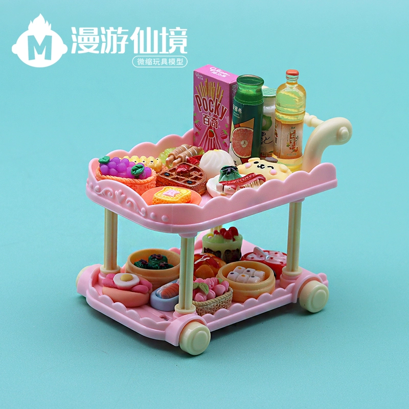Blind bag mini simulation trolley refreshment dining cart supermarket kitchen food play cake food play house toy gift