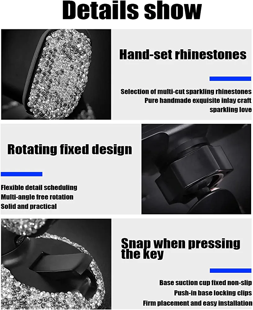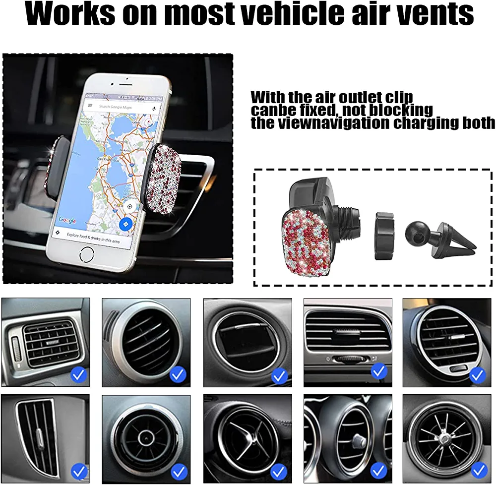 | nameOriginal | AUKEPO Bling Car Phone Holder, 360°Adjustable Auto Phone Mount, Rhinestone Car Stand Phone Holder with One More Air Vent Base, Car Interior Decoration for Windshield Dashboard and Air Outlet |