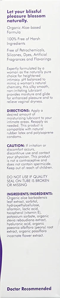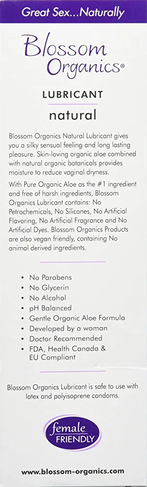 Blossom Organics Lubricant – Natural Moisturizing. Expertly formulated by a woman for women. Provides long lasting moisture and glide for enhanced pleasure. No petrochemicals or silicones.