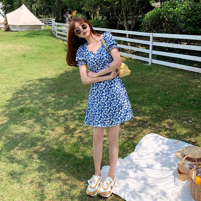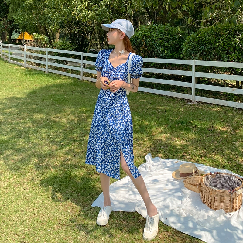 | nameOriginal | Blue 2023 new style French slit floral dress |