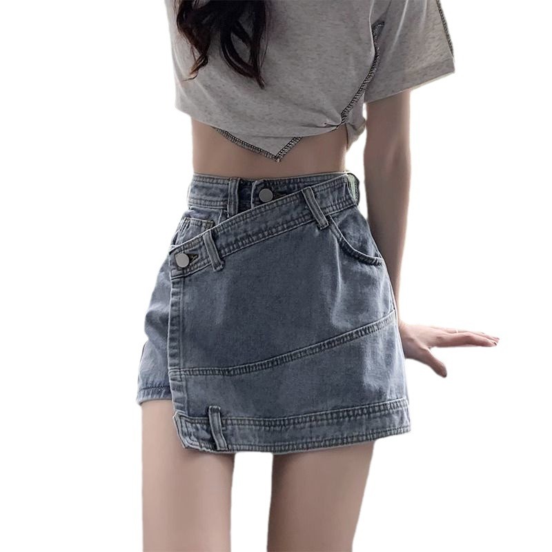 Blue All-match Denim Skirt Women's 2024 Summer New High Waist Slimming Little A- line Skirt Hip Skirt