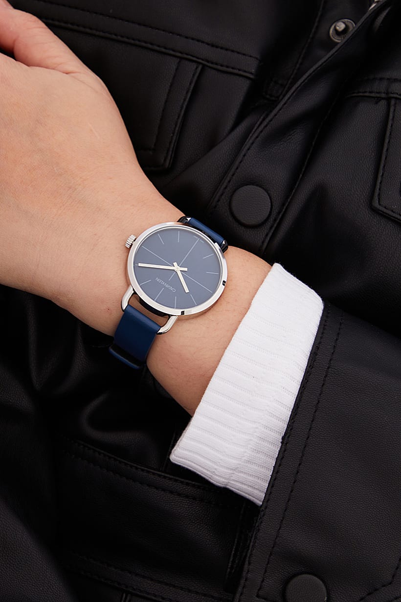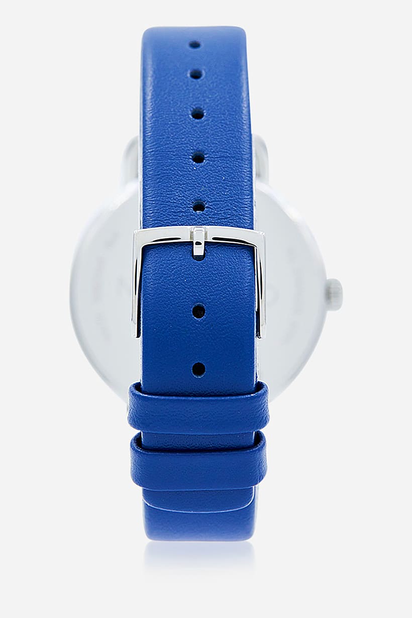 This product features a round dial with a glass window and does not have a display. It is an ideal gift for women and has a blue leather strap with a buckle closure. The watch is analog and has a blue dial, making it a great addition to any blue color-themed collection.
