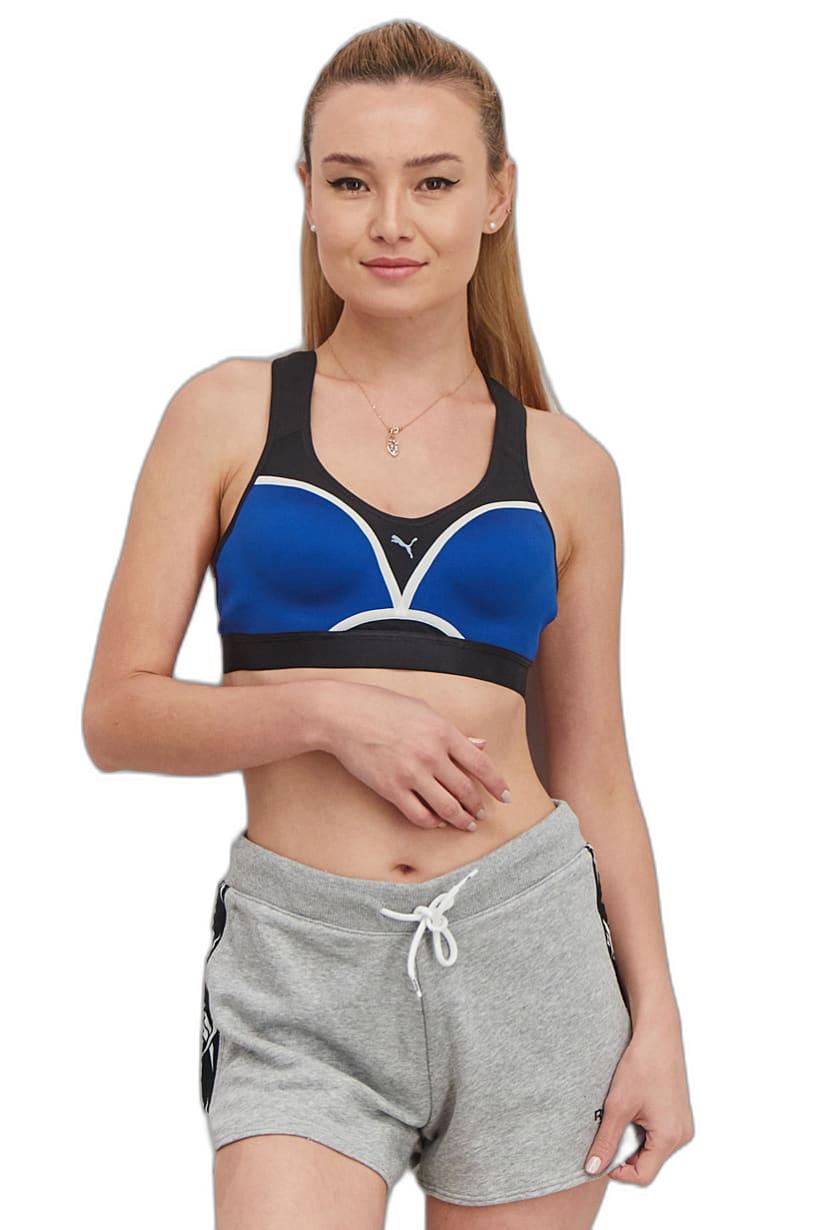 This sports bra is designed for training and has a sportswear fit. It is made of 100% polyester and is machine washable. The fabric is light in thickness and features a brand logo pattern and print. Please note that the product color may vary slightly due to photographic lighting sources or monitor settings. Additionally, for hygiene reasons, we cannot accept returns on lingerie, socks, undergarments, or swimwear. The size shown is in US measurements and the color family is blue.