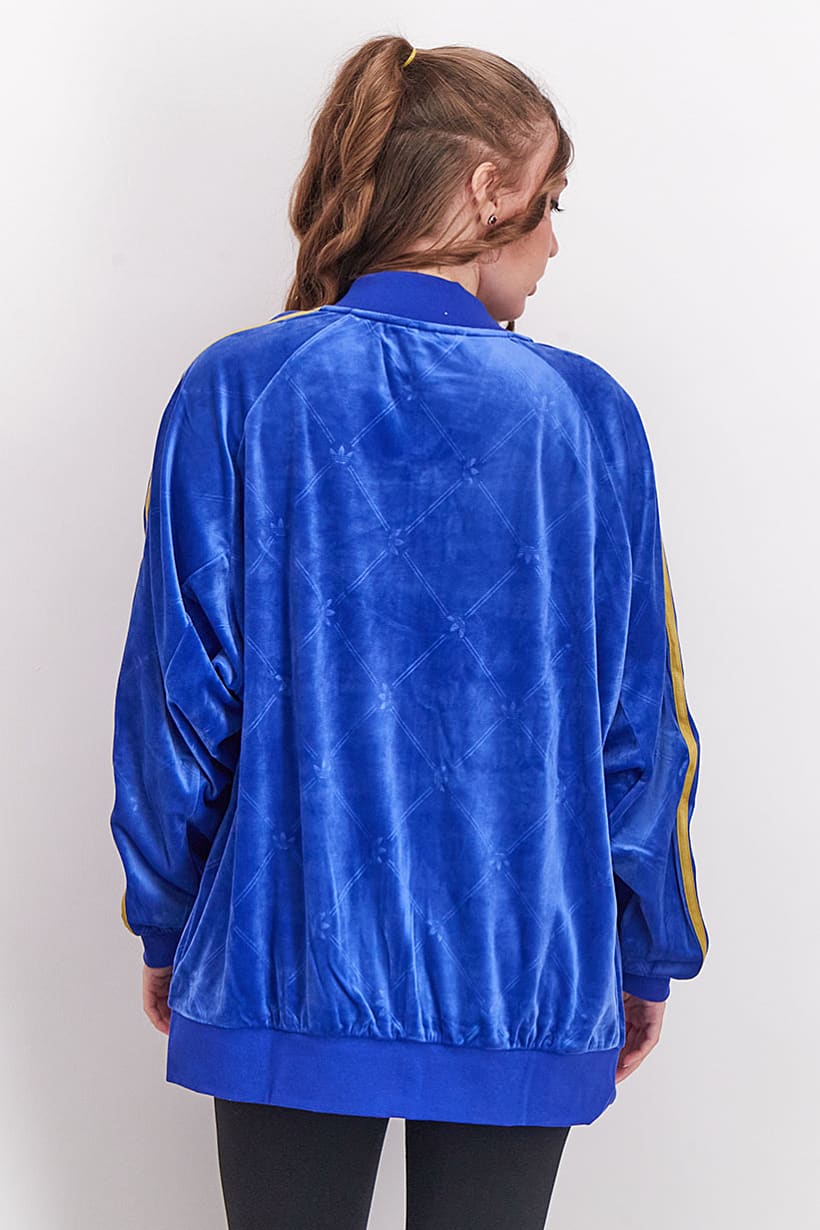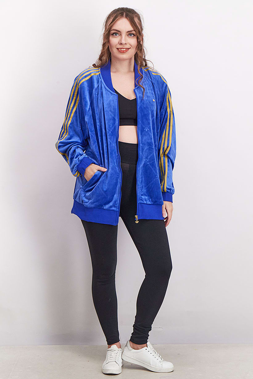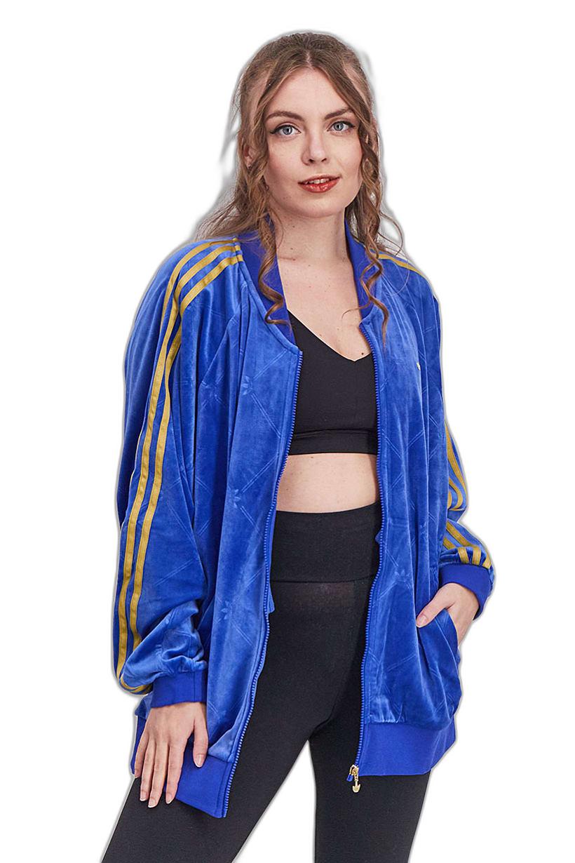 Women Sportswear Fit Loose Track Jacket, Blue and Gold