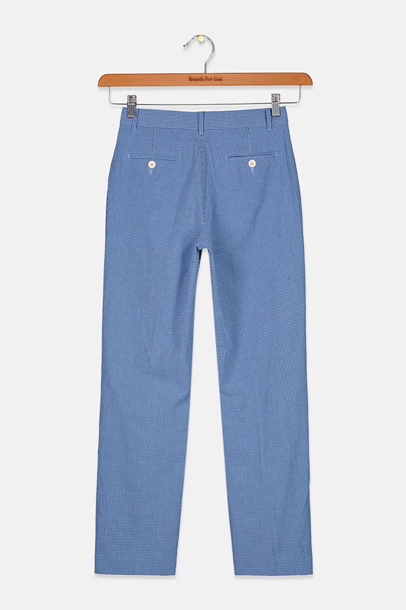 This product is perfect for boys and features a classic gingham pattern in shades of blue. It is made of 100% cotton and has a straight bottom hem with belt loops. The bottom closure is a convenient hook and bar, and it is machine washable for easy care. Please note that the product color may appear slightly different due to lighting or monitor settings. It is ideal for casual occasions.