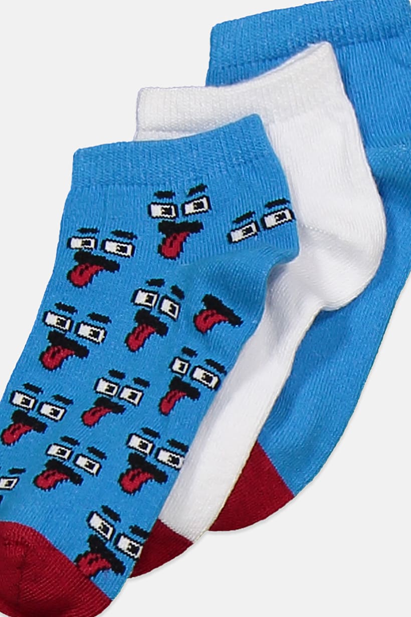 | nameOriginal | Kids Unisex 3 Pairs Graphic Socks, Blue and White |