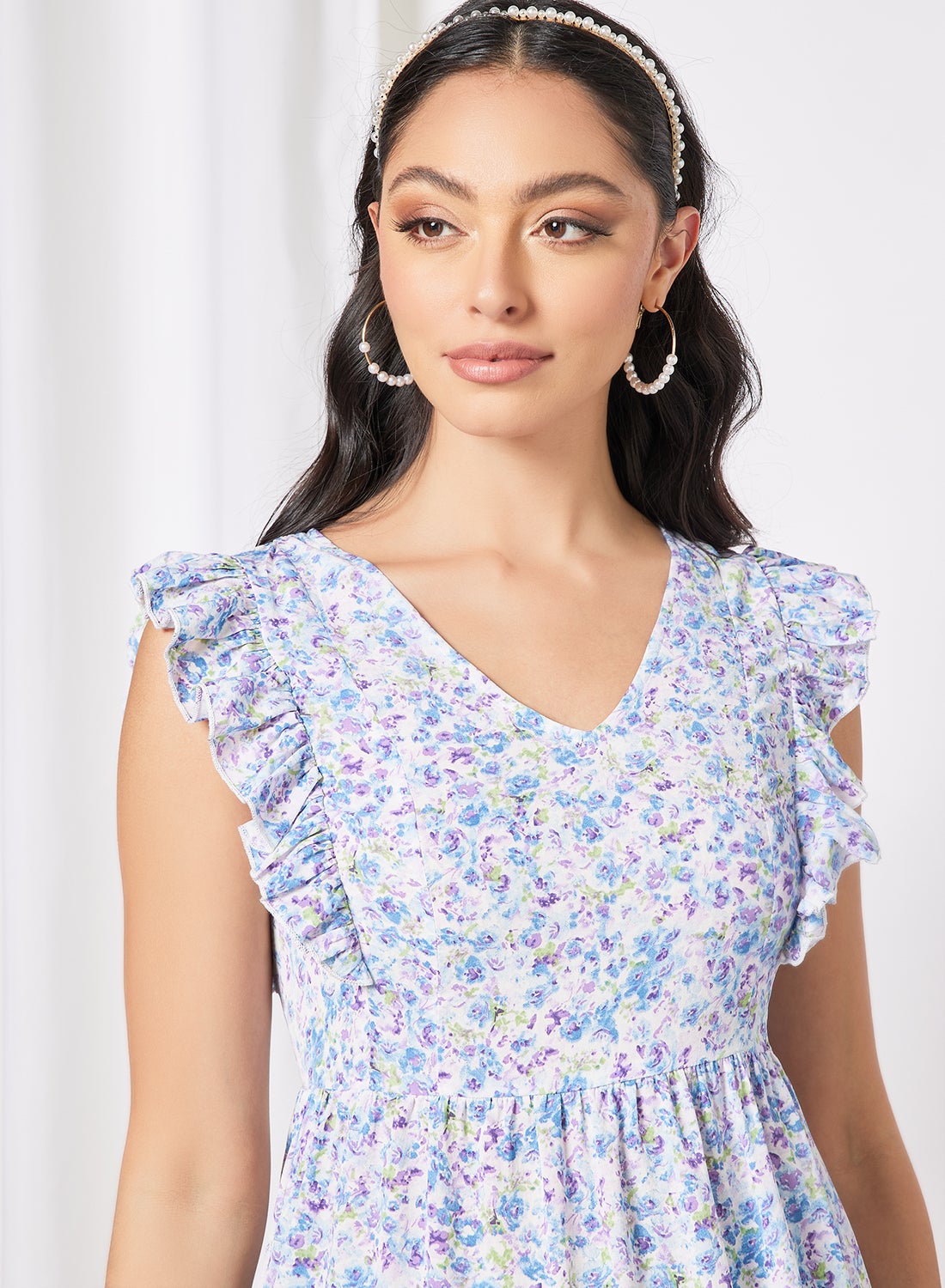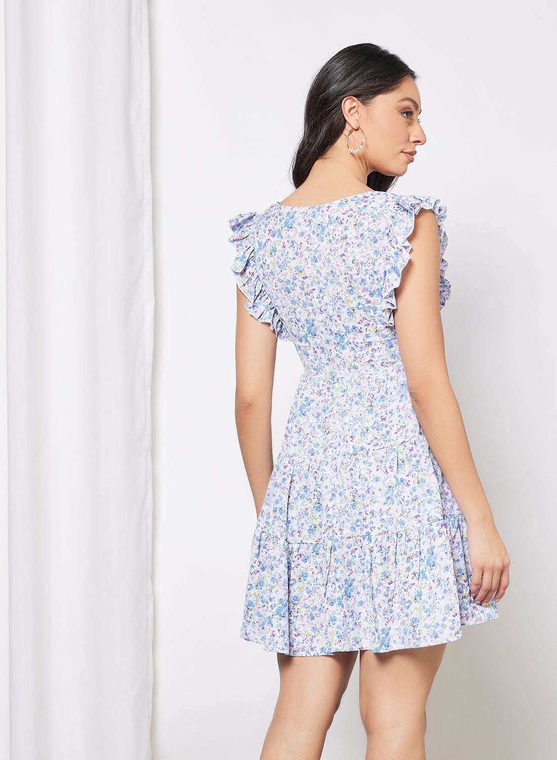 | nameOriginal | Casual Ruffle Cap Sleeve Mini Dress With V-Neck Printed Pattern 3 Blue White Print |