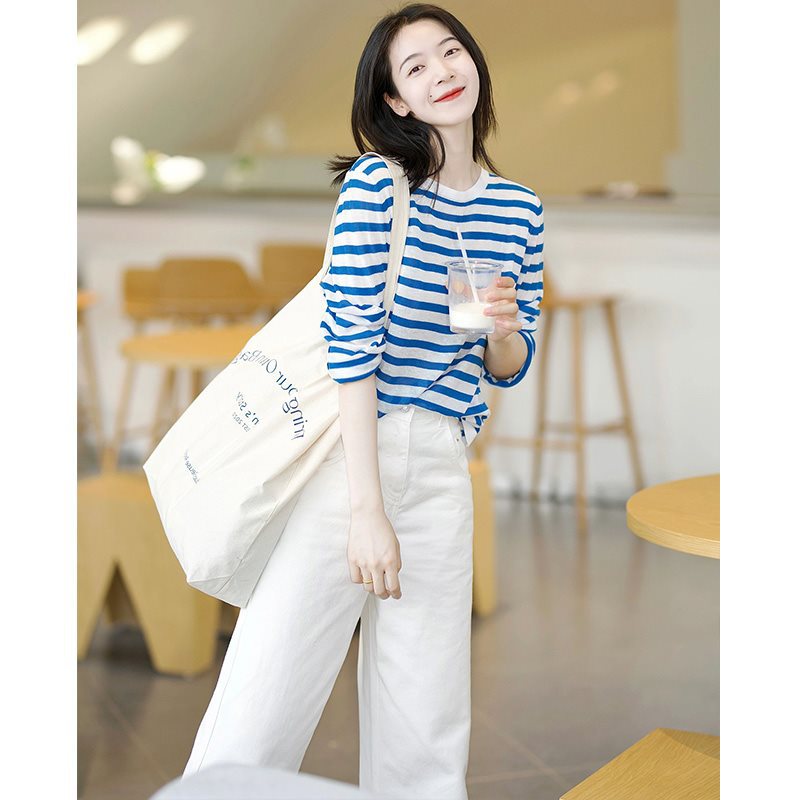 | nameOriginal | Blue and White Striped Long-sleeved T-shirt Women's Early Spring 2024 New Casual All-match T-shirt This Year's Popular Beautiful Thin Top |