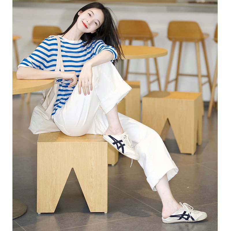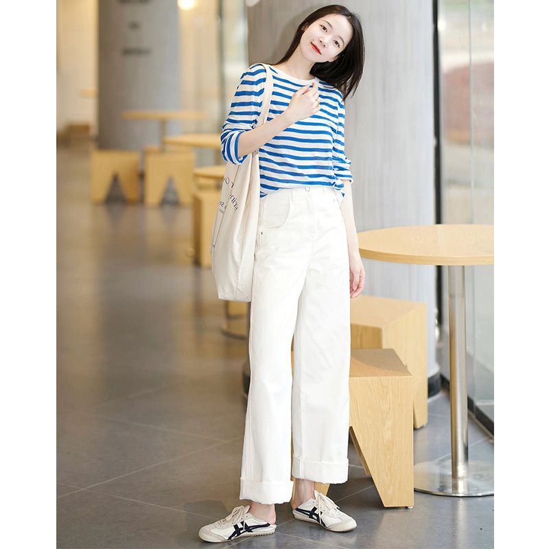 | nameOriginal | Blue and White Striped Long-sleeved T-shirt Women's Early Spring 2024 New Casual All-match T-shirt This Year's Popular Beautiful Thin Top |