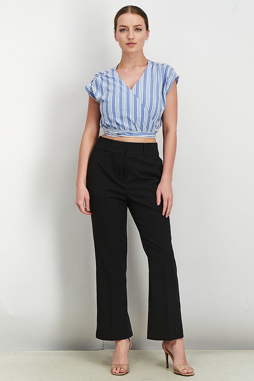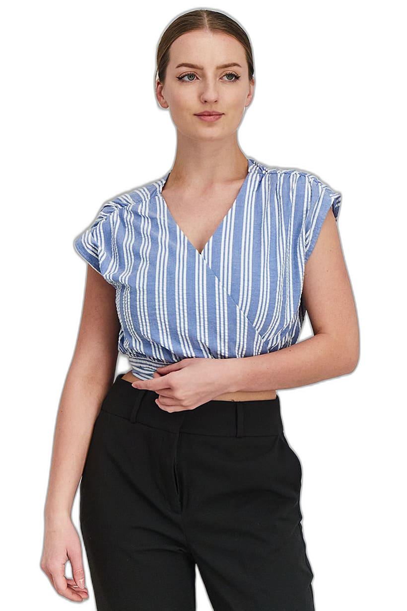 | sub_Categories | Women Clothing, Tops & Tees, women wrap around short sleeve stripe blouse blue white |