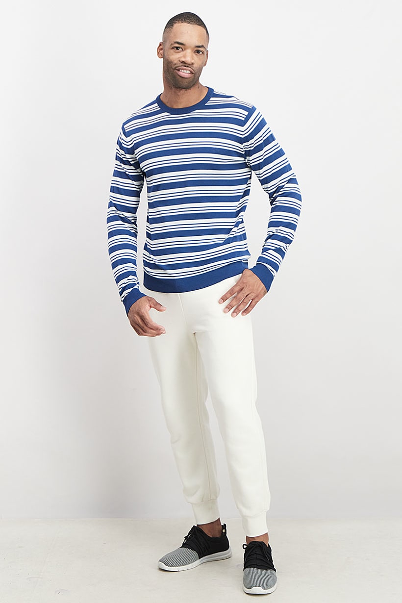 | descriptionOriginal | Care : Machine washable, Size shown : International, Sleeve Length : Long Sleeve, Sweatshirt Style : Pullovers, Thickness : Light, Type of Neckline & Collar : Crew neckline , Disclaimer : Product color may slightly vary due to photographic lighting sources or your monitor settings., Fabrics : 100% Cotton, Pattern & Print : Stripe, Types of Closures : Pullover, Color Family : Blue, White, |