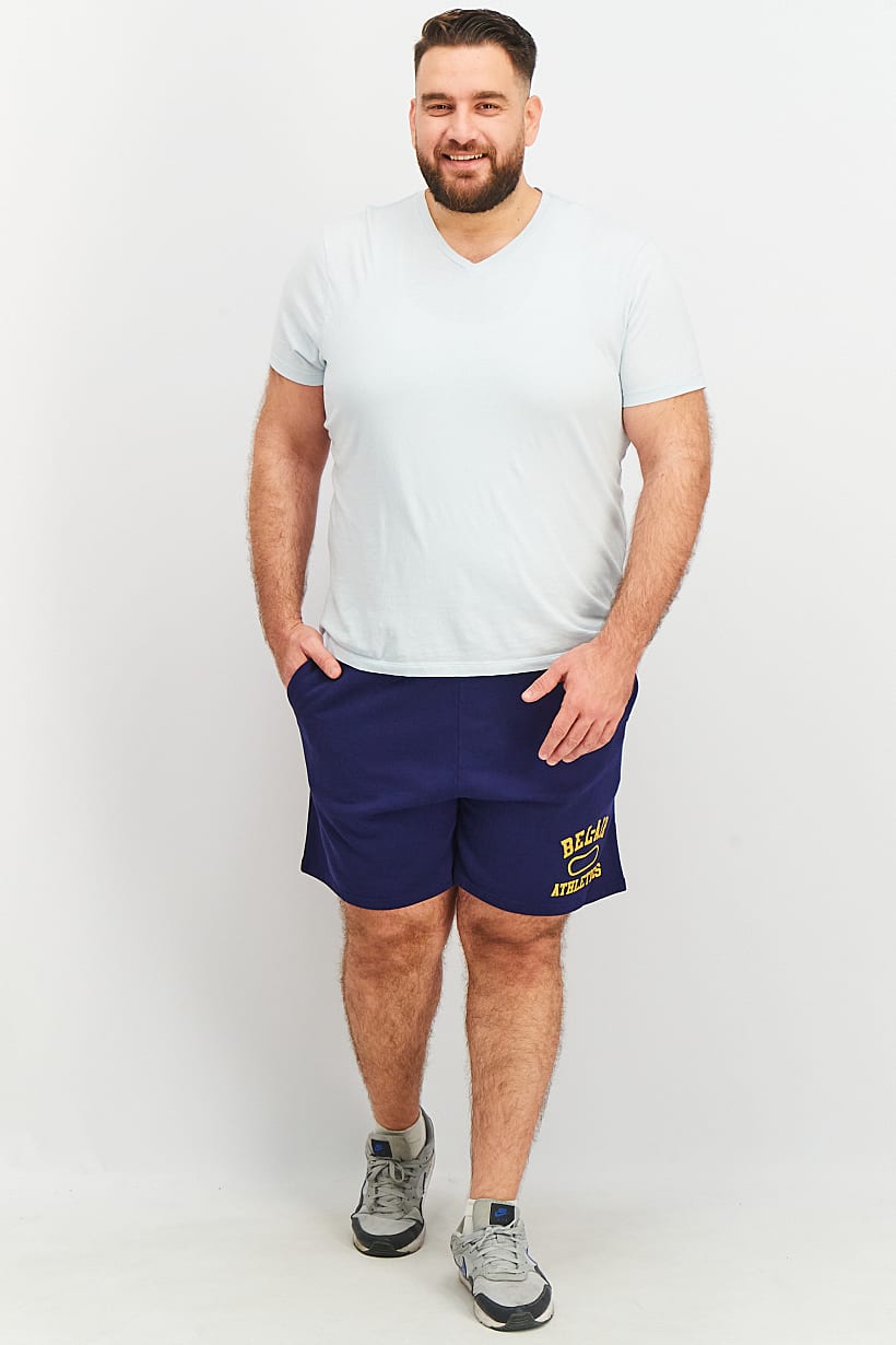 This product is easy to care for as it is machine washable. It has a sportswear fit and is available in international sizes. The fabric is light and made of 100% cotton, making it suitable for training. The shorts have a drawstring closure at the bottom and feature a graphic print. Please note that the product color may vary slightly due to photographic lighting sources or monitor settings. These shorts are perfect for sports occasions and fall under the blue color family.