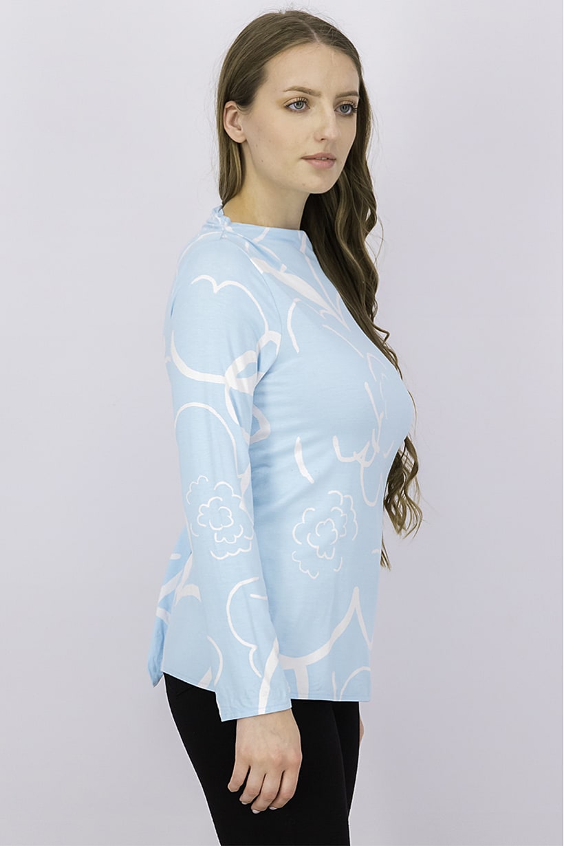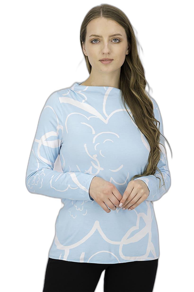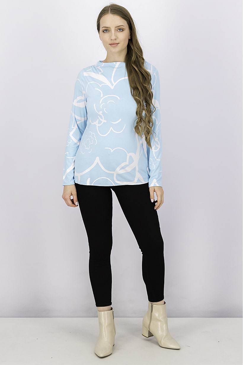 | sub_Categories | Women Clothing, Tops & Tees, women boat neckline allover print long sleeve printed top blue bloom outline |