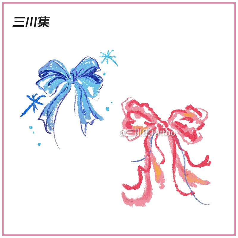 | nameOriginal | Blue bow tattoo stickers cute oil pastel hand-painted style color stickers arm clavicle waterproof long-lasting women |