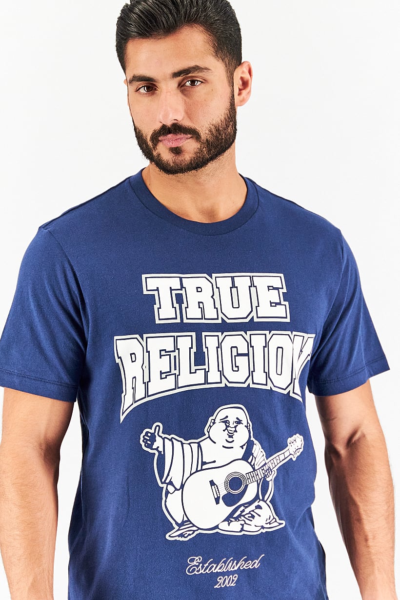 | nameOriginal | Men Crew Neck Short Sleeves Buddha 2002 T-Shirt, Dress Blue |