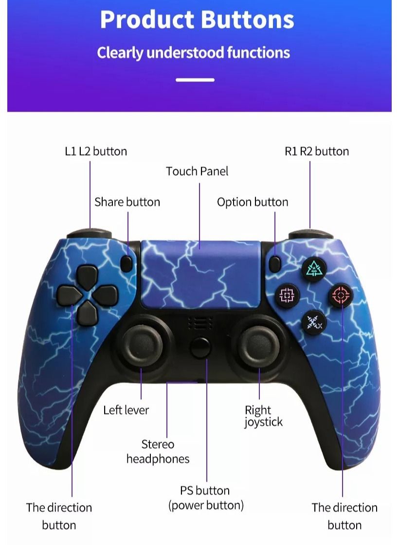 Introducing the Wireless Bluetooth Controller for PS4/PC/Steam with Gyroscope Blue Camouflage – the ultimate gaming accessory for all your gaming needs! This controller is designed to provide you with a seamless gaming experience, whether you’re playing on your PS4, PC or Steam. With its wireless Bluetooth connectivity, you can enjoy gaming without the hassle of tangled wires. The controller also features a gyroscope, which allows for more precise and accurate movements, giving you an edge over your opponents. The blue camouflage design adds a stylish touch to your gaming setup, making it a must-have accessory for any gamer. So, whether you’re a casual gamer or a pro, the Wireless Bluetooth Controller for PS4/PC/Steam with Gyroscope Blue Camouflage is the perfect choice for you!