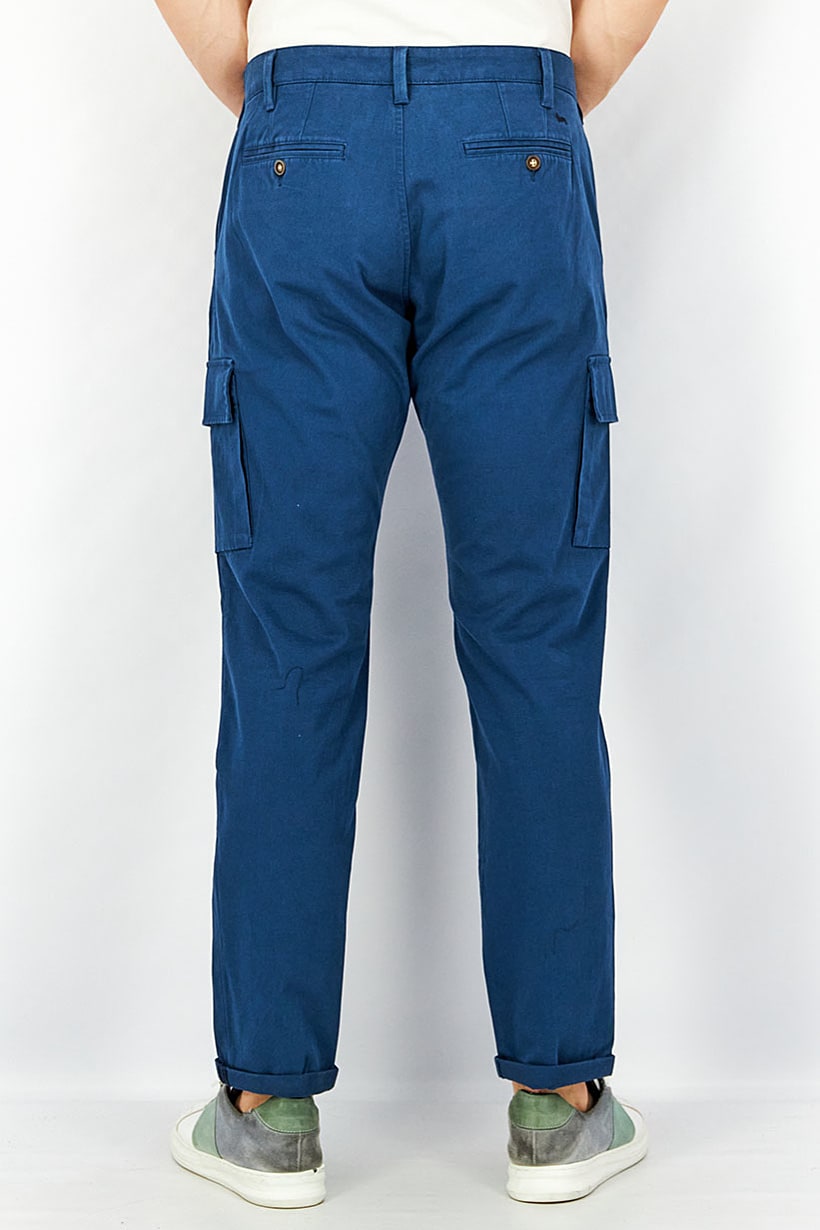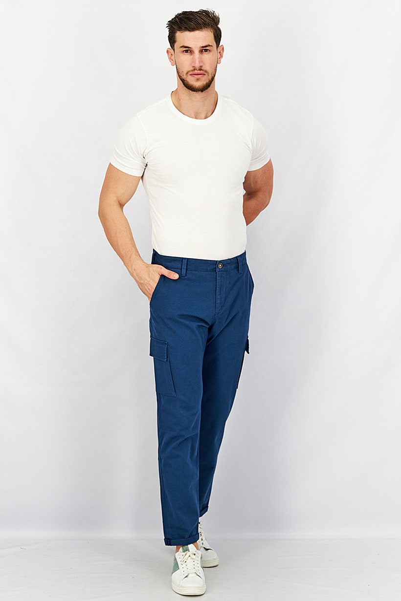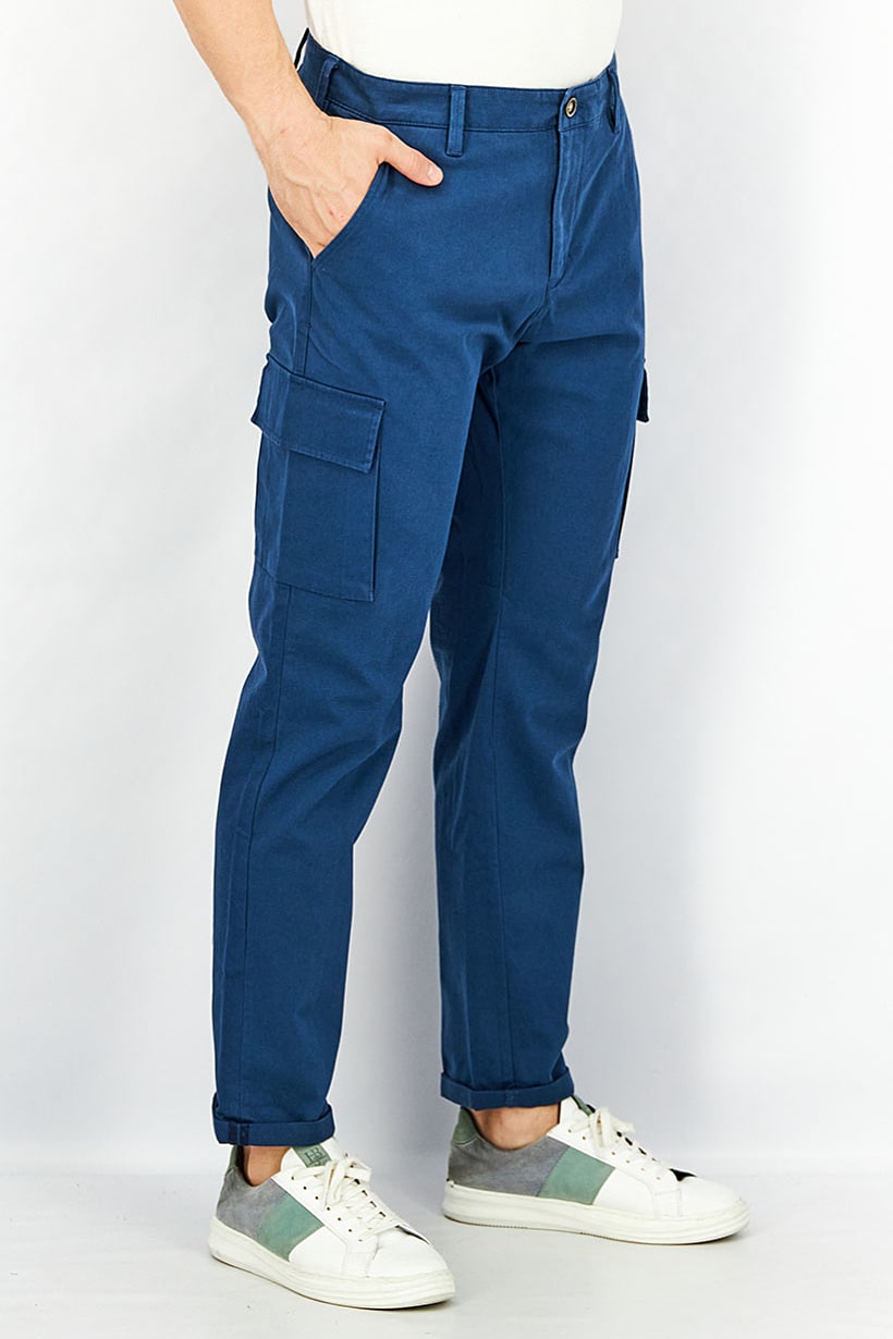 Blue Cargo Pants with 6 Pockets for Men, Narrow Fit.