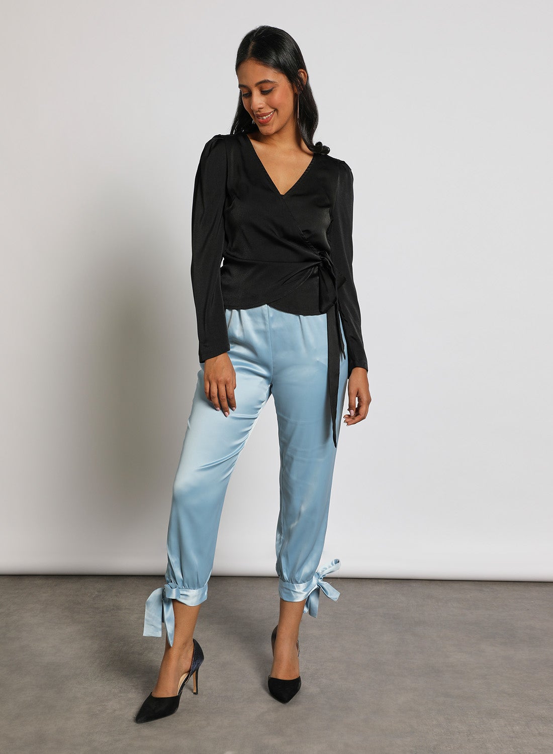 Introducing our Women’s Carrot Pants with Tie Knot Details in Blue – the perfect addition to your wardrobe for a chic and comfortable look. These pants are designed with a flattering carrot shape that tapers at the ankle, creating a sleek and modern silhouette. The tie knot details at the waist add a touch of elegance and sophistication to the overall design. Made with high-quality materials, these pants are soft, breathable, and durable, ensuring long-lasting wear. The blue color is versatile and easy to style, making it a great choice for any occasion. Whether you’re dressing up for a night out or keeping it casual for a day out with friends, these pants are sure to become a staple in your wardrobe. Order now and experience the perfect combination of style and comfort!