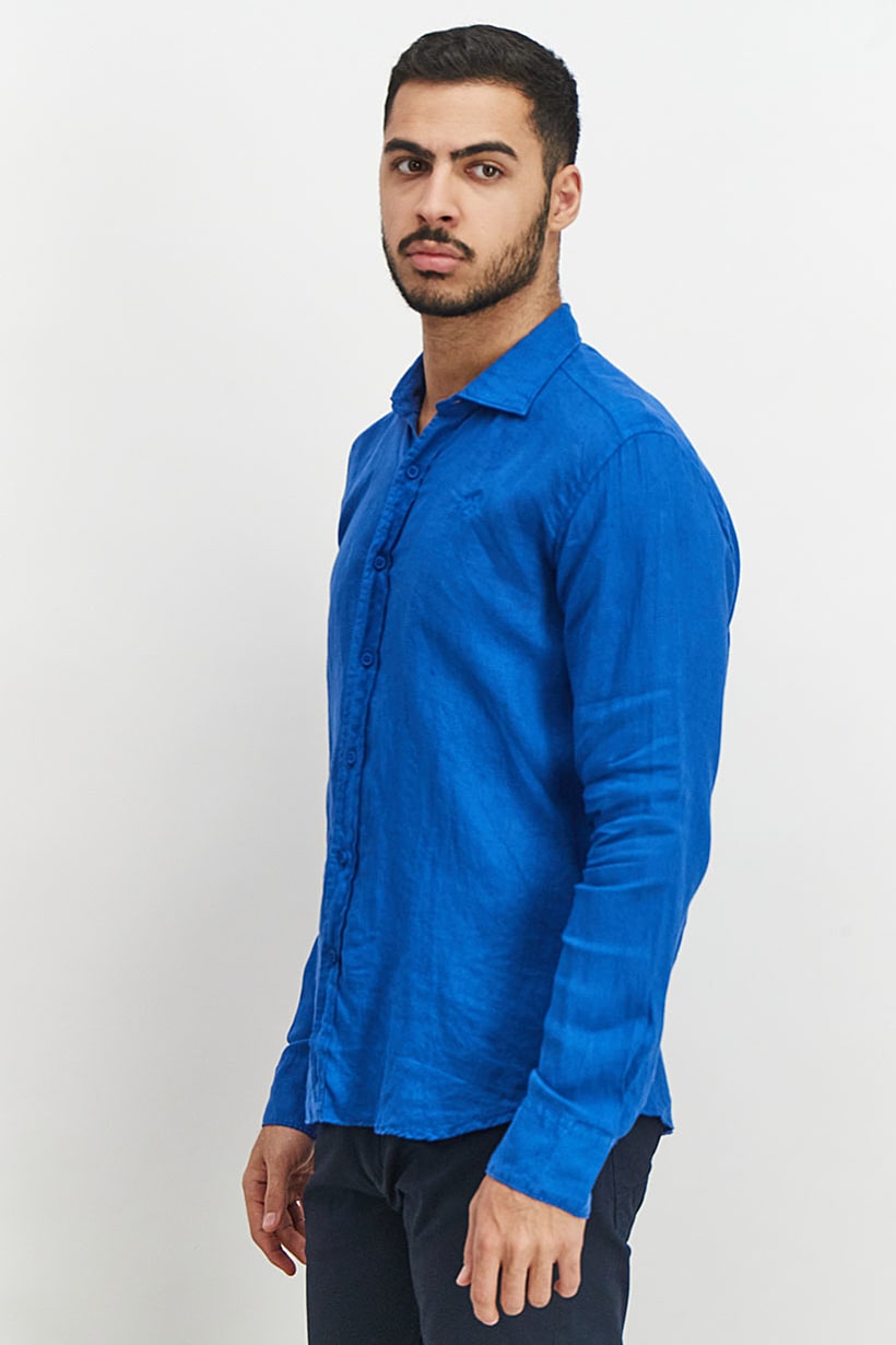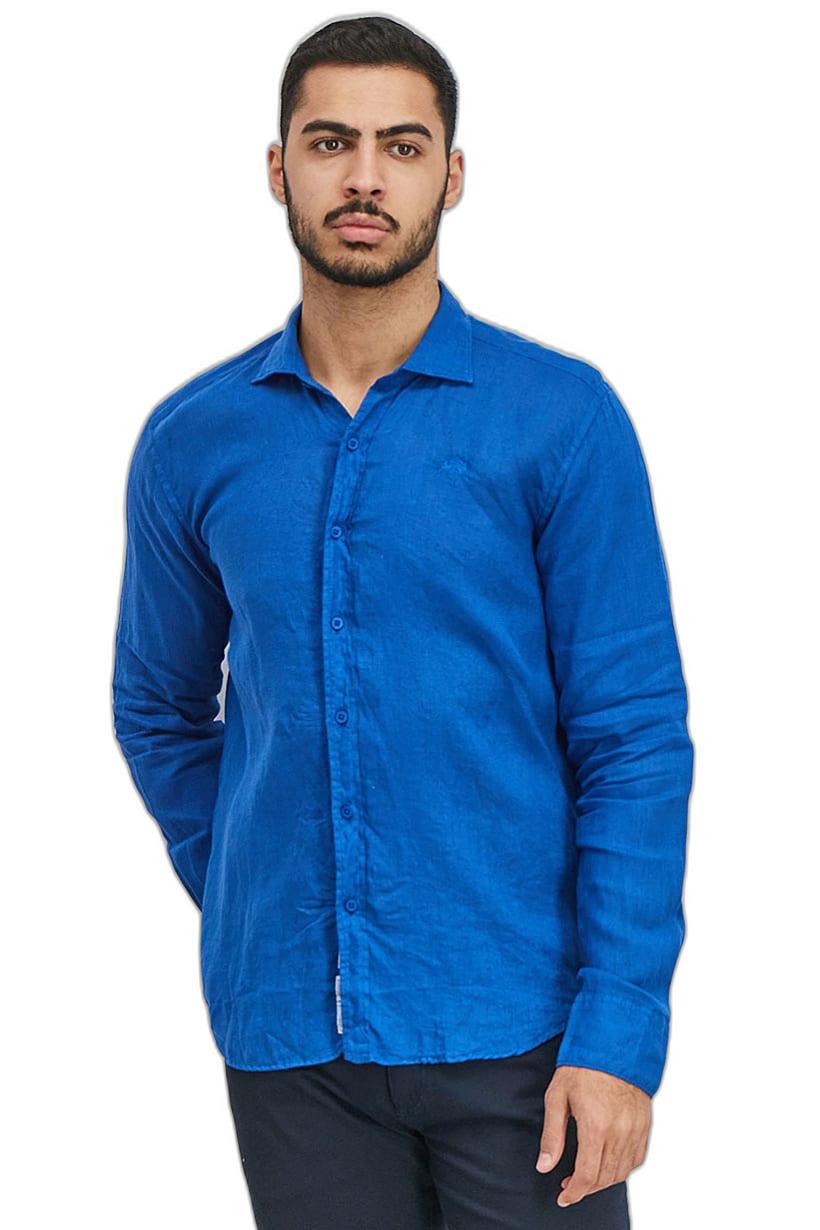 Blue Casual Shirt with Embroidered Logo, Regular Fit, Long Sleeve for Men.