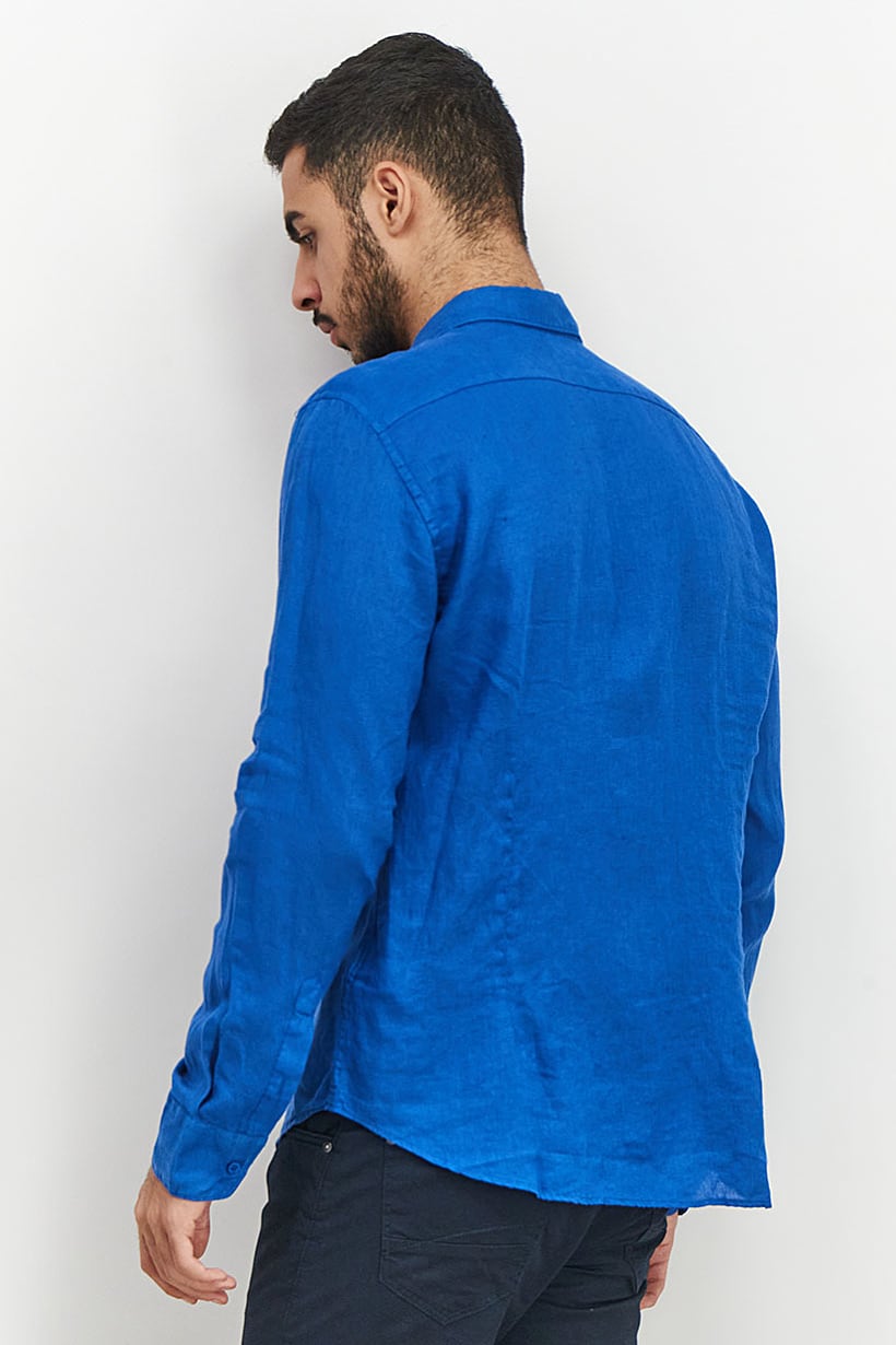 Men Clothing, Casual Shirts, men regular fit embroidered logo long sleeve casual shirt blue