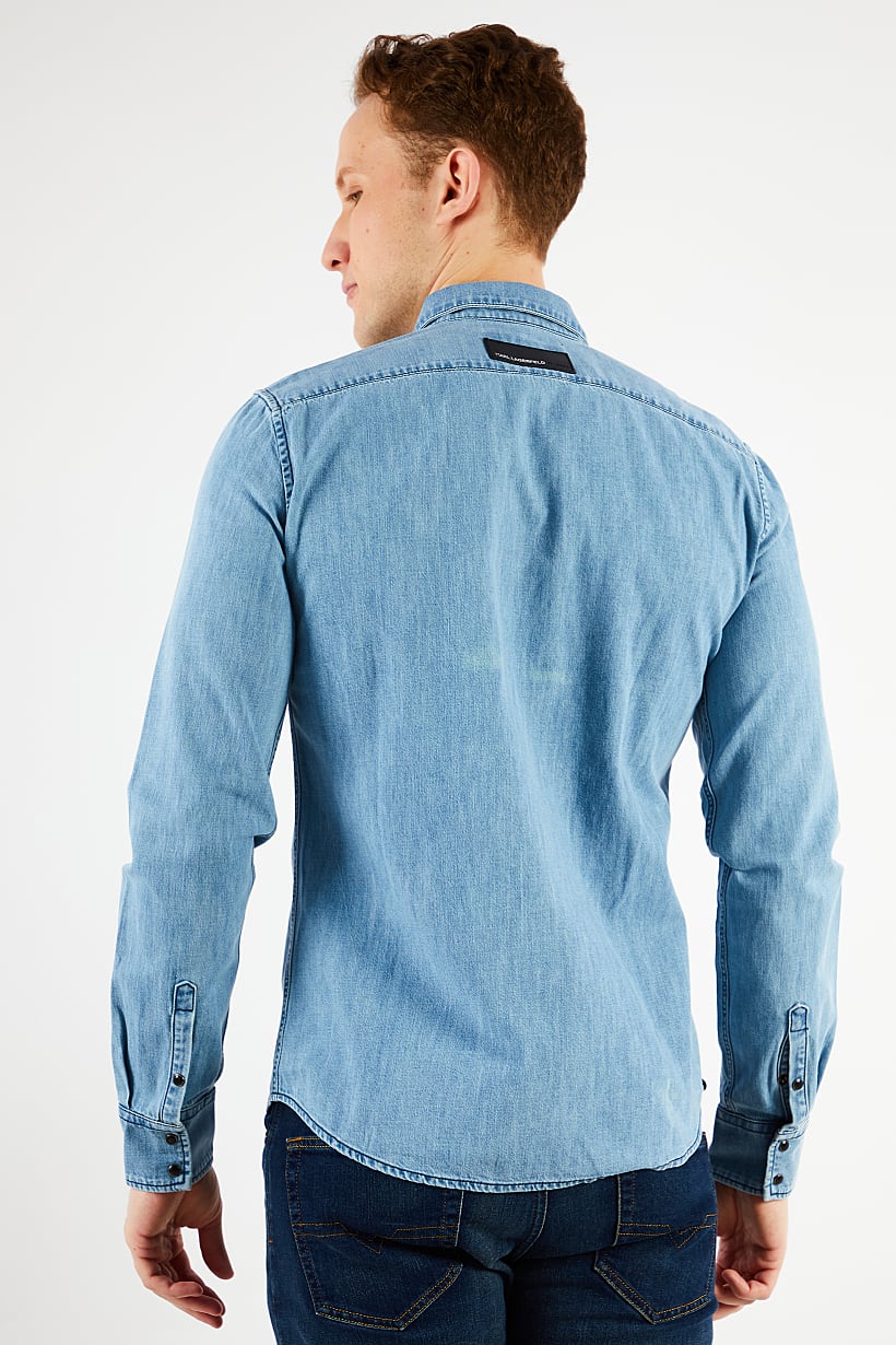 Care : Machine washable, Fit : Regular fit, Size shown : International, Sleeve Length : Long Sleeve, Types of Hem : Straight hem, Types of Neckline & Collar : Spread collar , Types of Sleeve : Longsleeve, Disclaimer : Product color may slightly vary due to photographic lighting sources or your monitor settings., Fabrics : 100% Cotton, Occasion : Casual, Pattern & Print : Washed, Types of Closures : Snap button, Color Family : Blue,