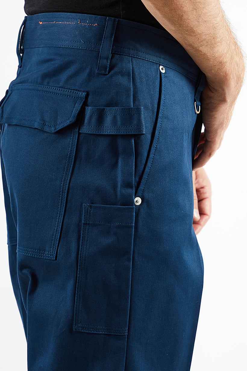 This product is suitable for men and has a regular fit. It is a chino style pant with a mid-rise and five pockets. The bottom closure is a button and the bottom style is a five pocket style. The fabric is made of 98% cotton and 2% elastane, making it machine washable. The color of the product may slightly vary due to photographic lighting sources or monitor settings. It is ideal for casual occasions and comes in a plain/solid blue color. The size shown is in inches.