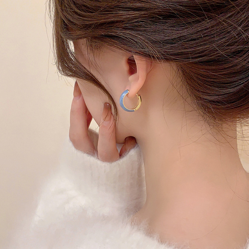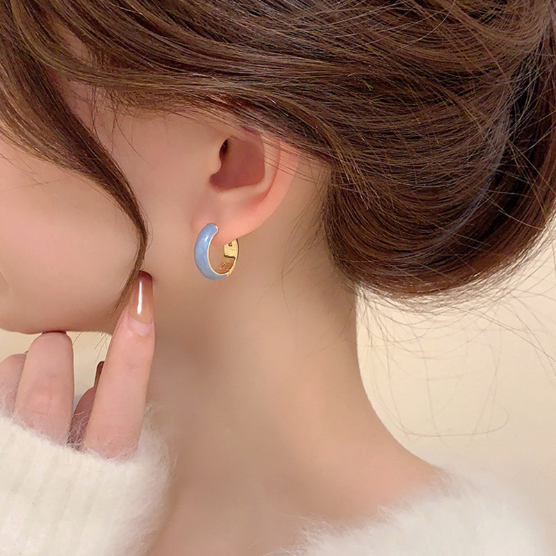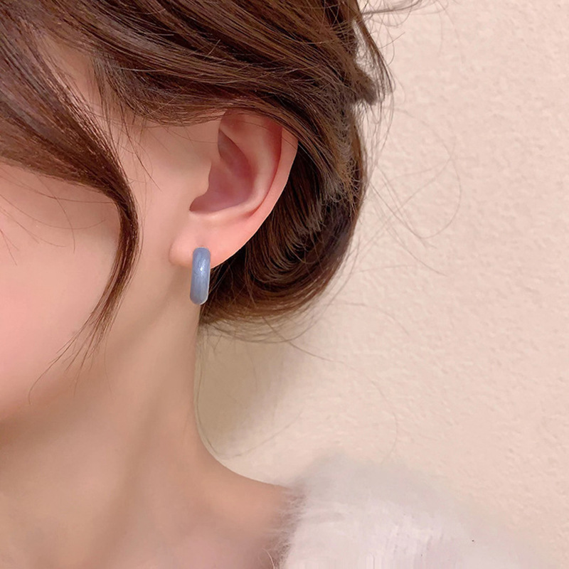 | nameOriginal | Blue Circle Ear Buckle Women's French Style Retro Haze Blue Earrings Summer Simple Plain Circle Colorful Circle Earrings for Commuter |