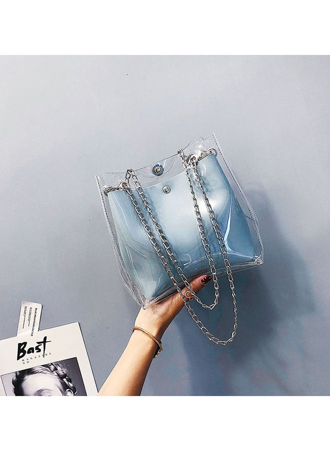 Introducing our stylish and trendy Transparent Shoulder Bag in Blue! This bag is perfect for those who want to make a fashion statement while keeping their belongings safe and secure. The transparent design allows you to easily see what’s inside, making it easy to find your essentials. The blue color adds a pop of color to any outfit, making it a versatile accessory for any occasion. The shoulder strap is adjustable, allowing you to wear it comfortably on your shoulder or across your body. The bag is made of high-quality materials, ensuring durability and longevity. Whether you’re heading to the beach, running errands, or going out with friends, this Transparent Shoulder Bag in Blue is the perfect accessory to complete your look.