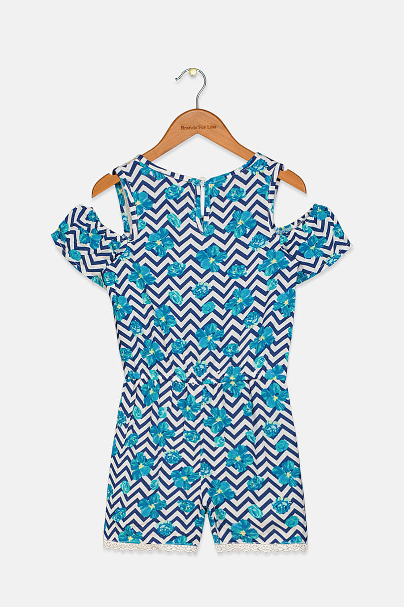 | sub_Categories | Girls Fashion, Bodysuits & Rompers, kids girl round neck floral print romper blue combo |