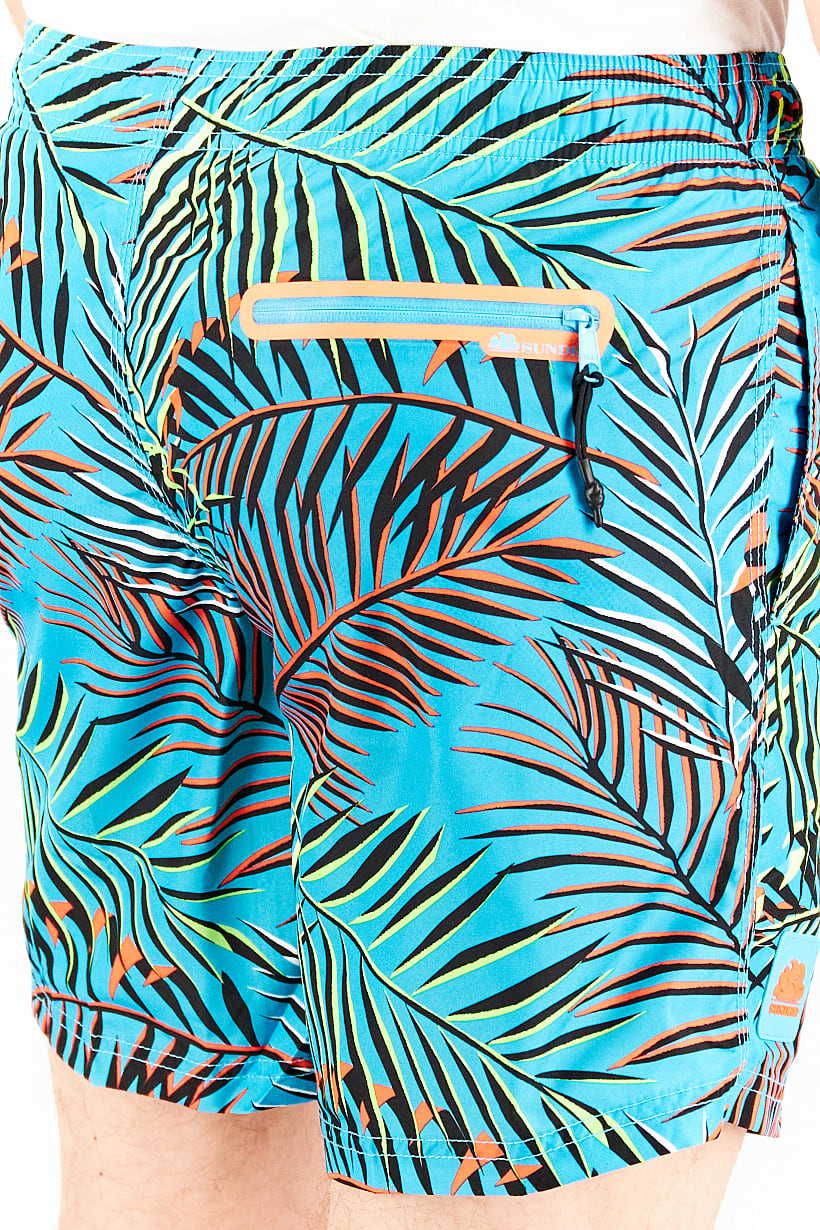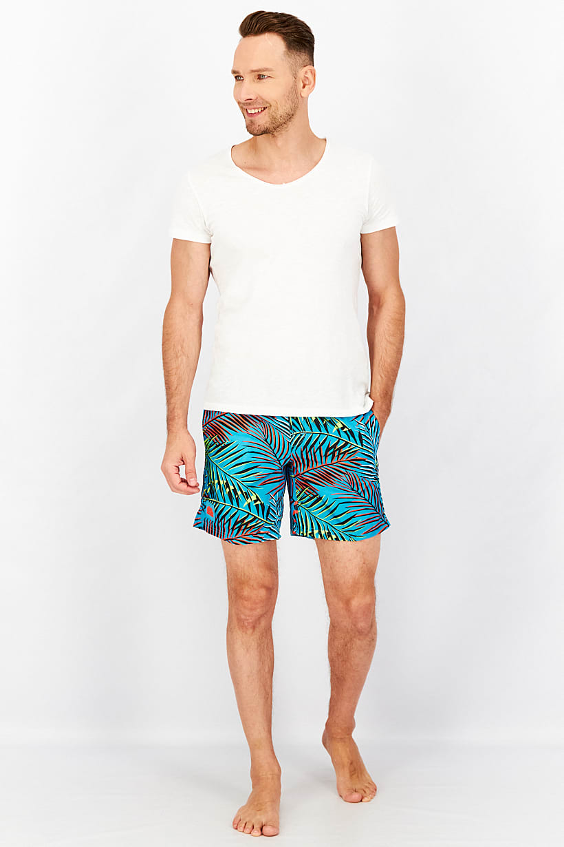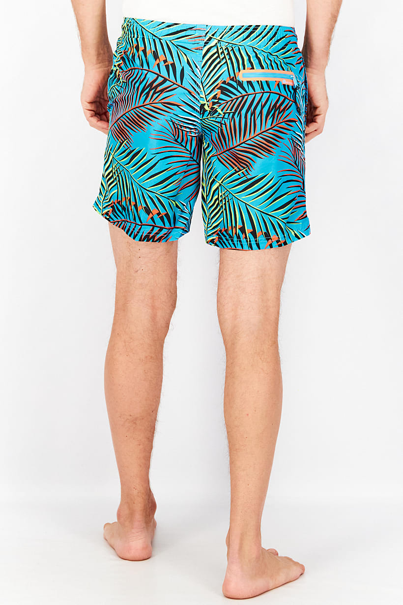 This product is a pair of board shorts designed for swimming. It is made of 100% polyester fabric and features an allover blue print. Please note that this product should be hand washed for care. The size shown is international. However, we would like to inform you that we do not accept returns on lingerie, socks, undergarments, and swimwear due to hygiene reasons.