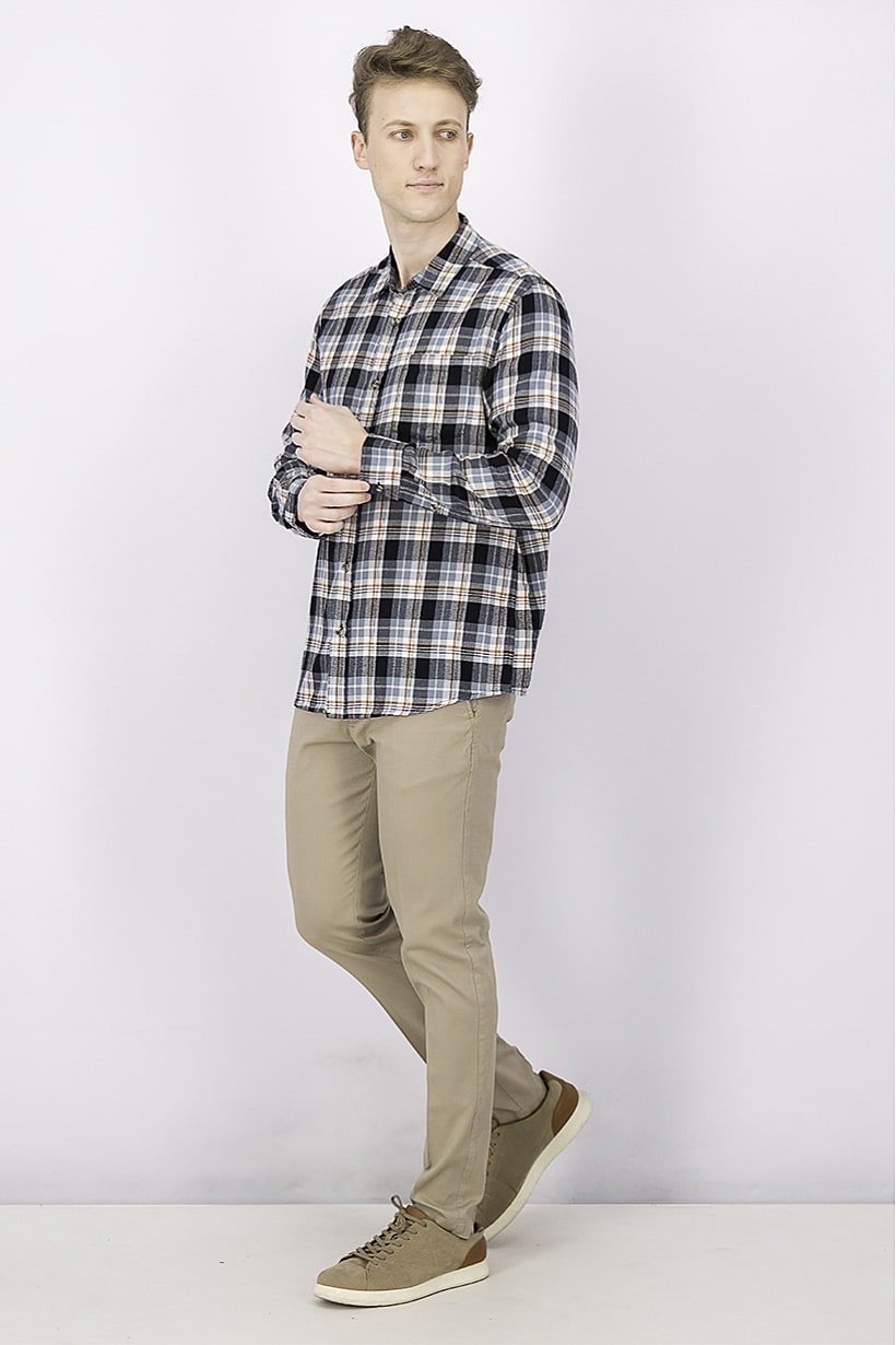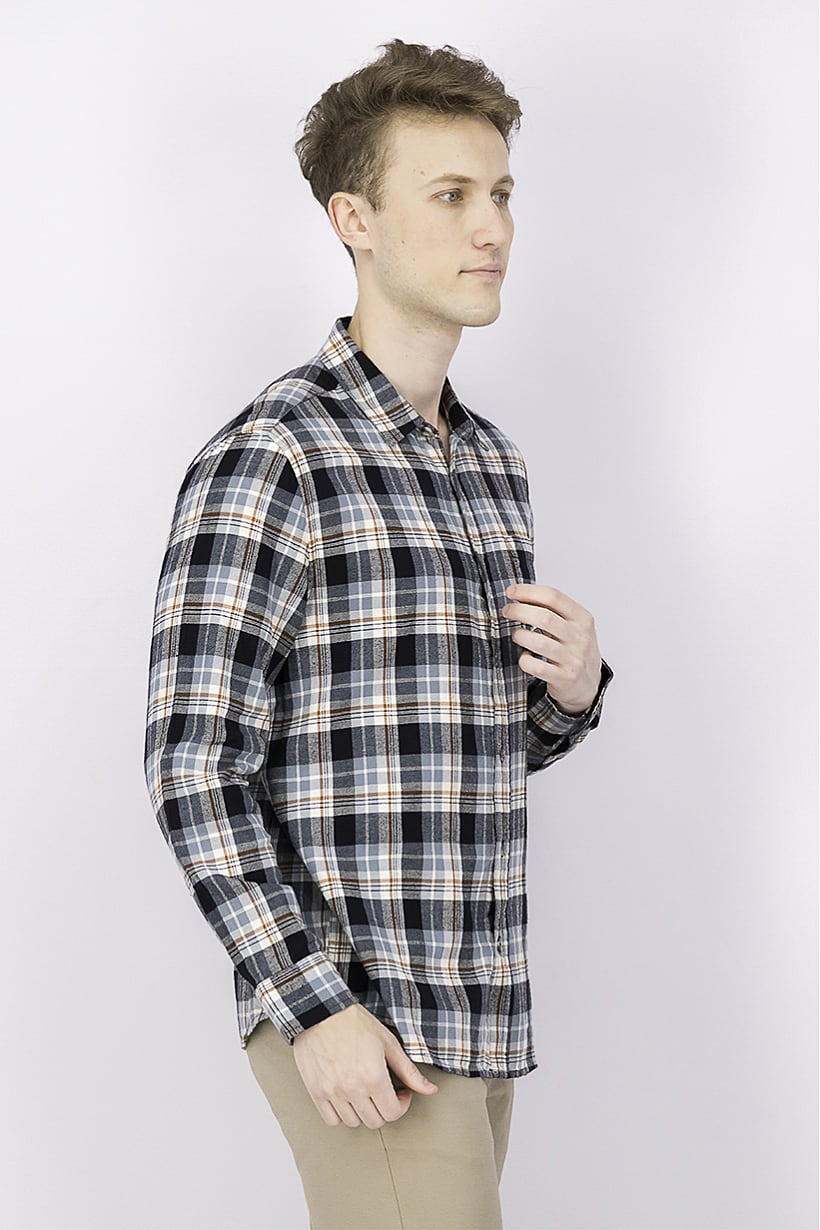 Care : Machine washable, Fit : Regular fit, Size shown : International, Sleeve Length : Long Sleeve, Types of Hem : Straight hem, Types of Neckline & Collar : Pointed collar , Disclaimer : Product color may slightly vary due to photographic lighting sources or your monitor settings., Fabrics : 100% Cotton, Pattern & Print : Plaid, Types of Closures : Button, Color Family : Blue, Occasion : Casual,