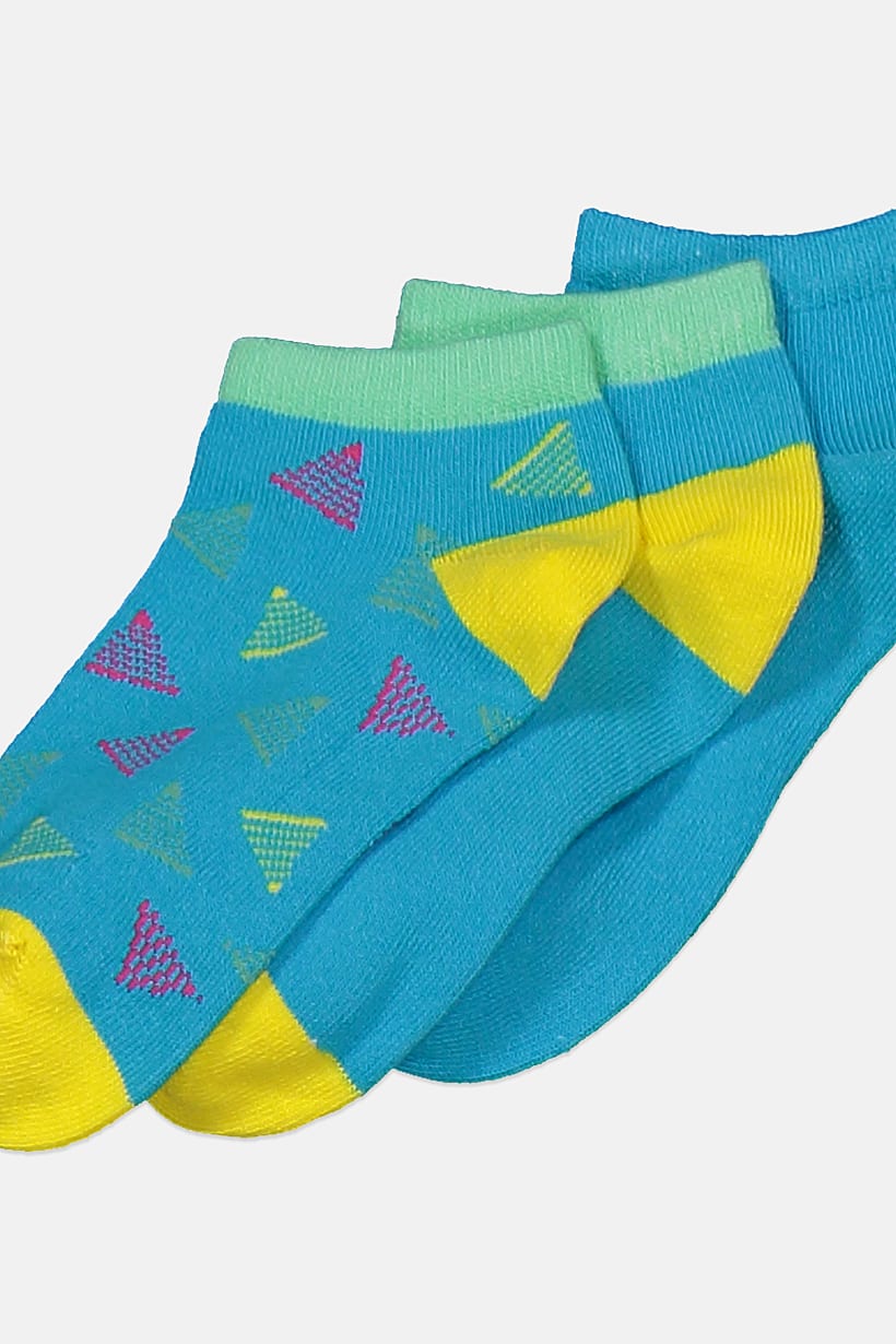 Blue Combo Printed Socks for Girls – Set of 3 Pairs.