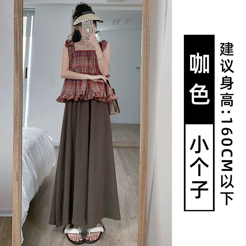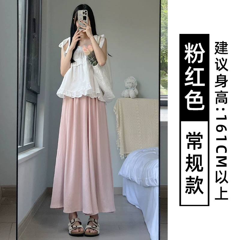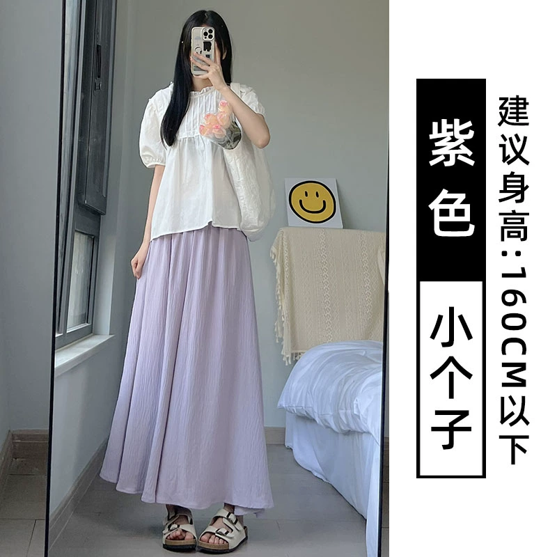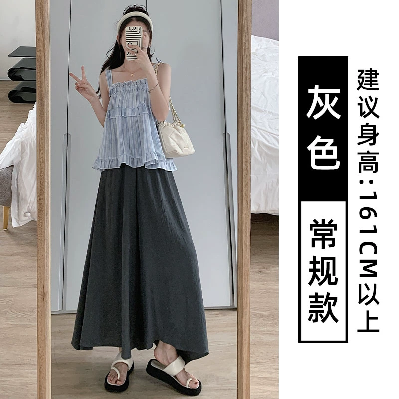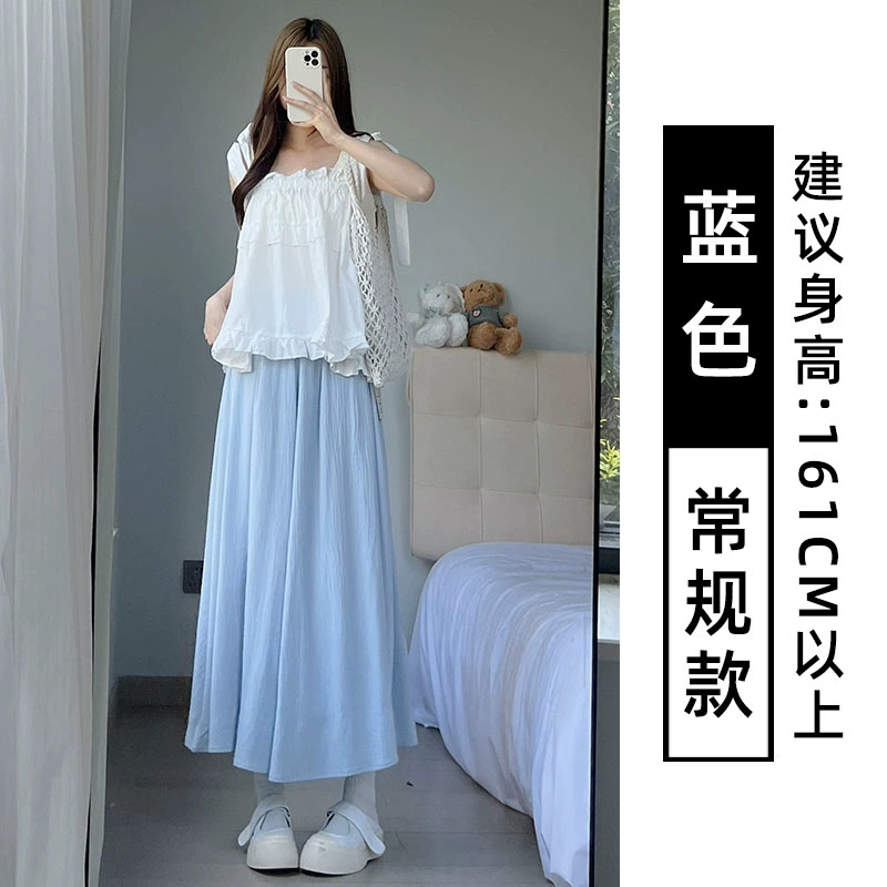 | nameOriginal | Blue culottes for women summer 2024 new style small high-waisted a-line half-length pleated skirt drapey casual wide-leg pants |